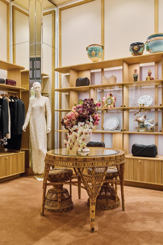 Autour de ces créations, l’univers Adam Lippes se déploie avec justesse : cachemires signature, silhouettes du printemps 2026 et essentiels intemporels composent une garde-robe pensée pour durer. Des antiquités françaises, sélectionnées au fil des voyages du créateur, ponctuent l’espace et lui confèrent une dimension personnelle, presque résidentielle.
