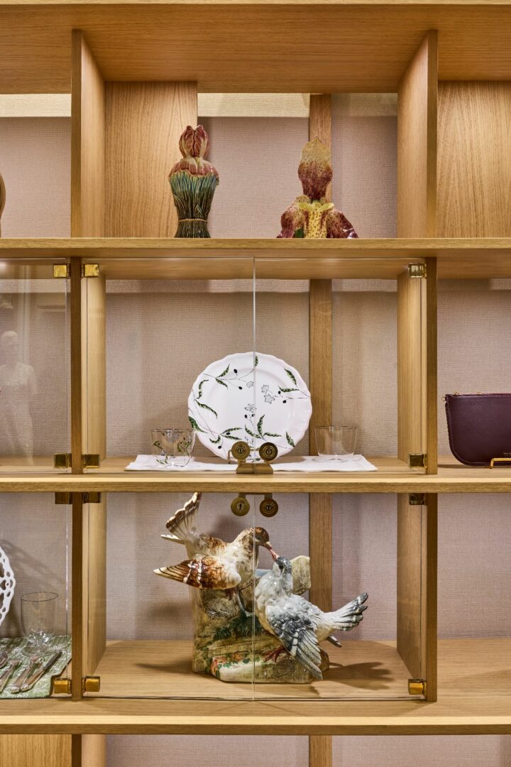 La boutique accueille également une collaboration dédiée aux arts de la table avec Zoë de Givenchy. Cette collection célèbre le goût du fait main à travers une faïence française peinte à la main, du linge raffiné et une verrerie d’exception réalisée avec la maison viennoise Lobmeyr, révélant une approche sensible et contemporaine de l’art de recevoir.