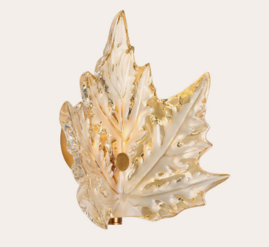 Applique murale Champs-Élysées 1 feuille : De l’applique au lustre monumental, Lalique s’inspire de la coupe Champs-Élysées créée par Marc Lalique en 1951 pour concevoir une collection de luminaires. Les feuilles de cristal finement nervurées évoquent les allées de platanes qui longent les Champs-Élysées. A travers elles, c’est un peu de l’âme de Paris que l’artiste a capturée. Par une subtile alchimie, les jeux de lumière mis en valeur par le cristal produisent à chaque fois des reflets différents, faisant de chaque feuille une pièce unique.