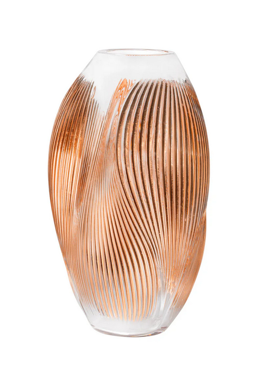 Satiné puis repoli avec une précision infinie, le cristal révèle un subtil dialogue entre ombre et lumière. Les courbes captent les reflets qui glissent et dansent sur leur surface, donnant à chaque pièce la grâce d’un mouvement figé. La palette prolonge cette poésie : le cristal incolore exprime la pureté, le patiné corail évoque la douceur d’un crépuscule d’été. Dans les éditions les plus précieuses, de fines feuilles d’or rose appliquées à la main viennent illuminer la matière et rendre chaque pièce unique.