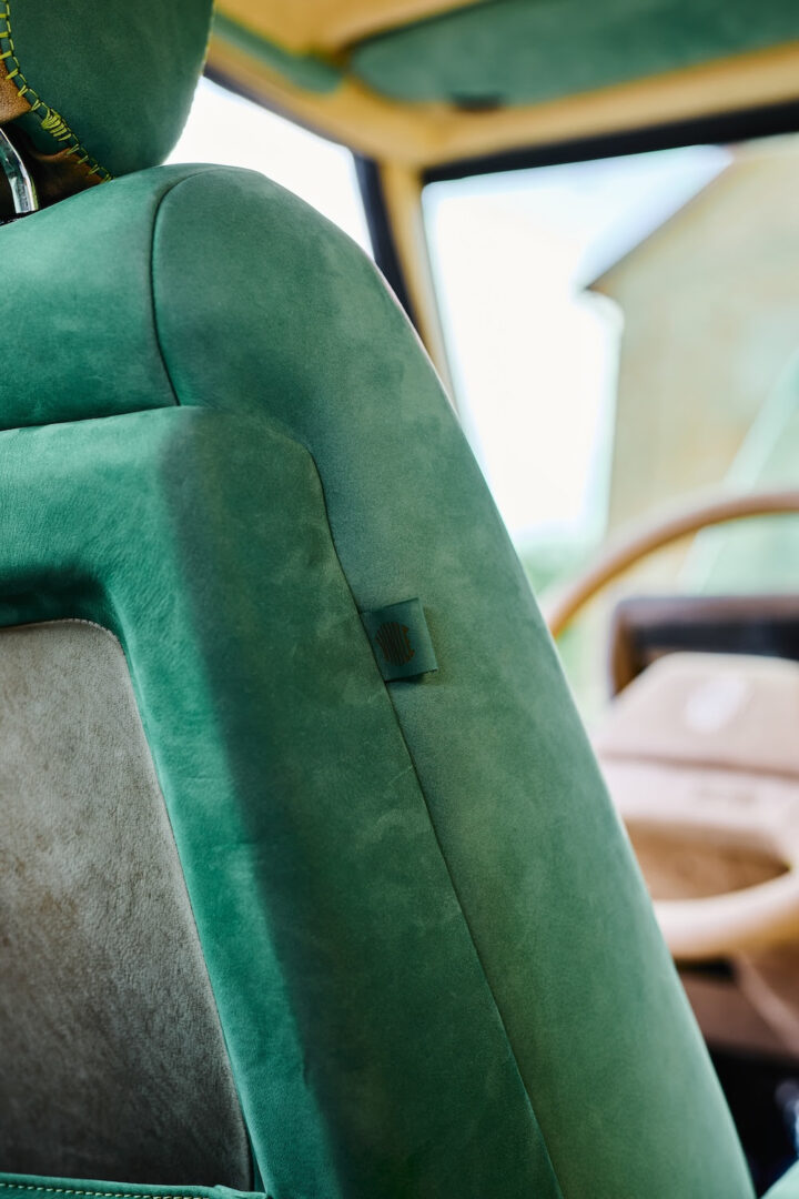 Le premier exemplaire se distingue par une carrosserie vert métallisé associée à un toit noir brillant. Les proportions demeurent fidèles à l’icône lancée en 1970, mais chaque surface a été repensée et retravaillée pour exprimer pureté formelle, cohérence visuelle et solidité.