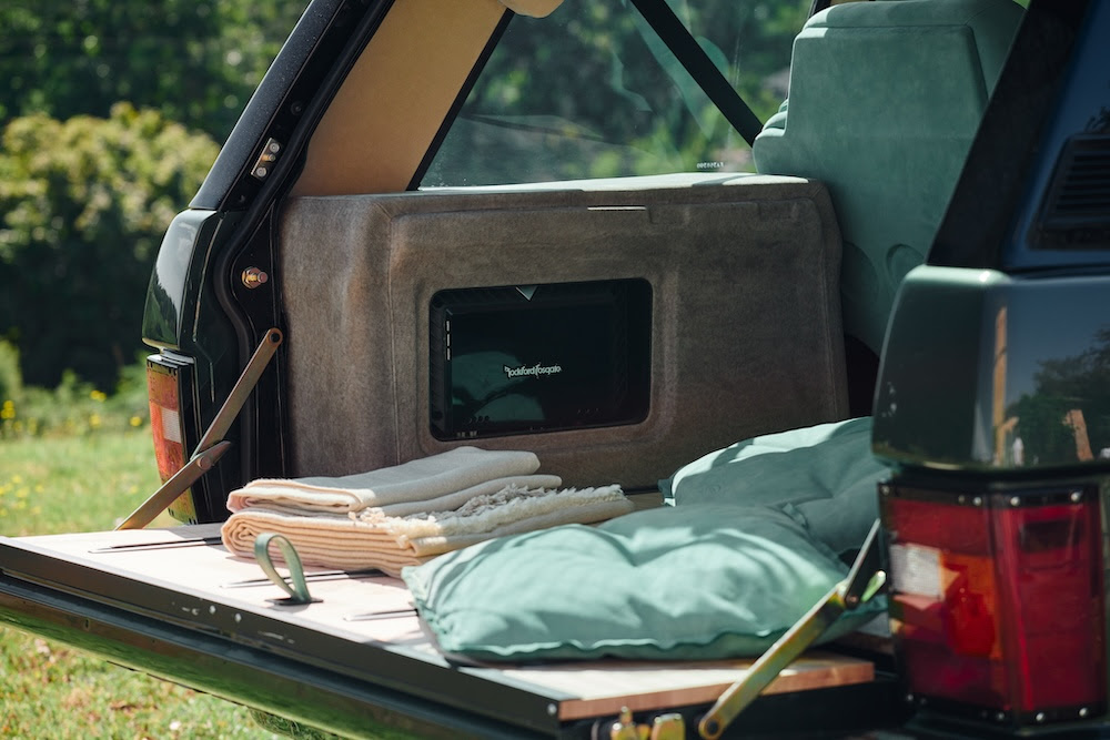 Le système audio, conçu en interne, rend hommage au nom de la marque : une radio DAB intégrée utilise l’antenne aileron de toit, tandis que trois amplificateurs Rockford, un processeur Mosconi, dix haut-parleurs Focal et deux subwoofers délivrent un son clair, puissant et fidèle -sublimé par un câblage hautes performances Thender.