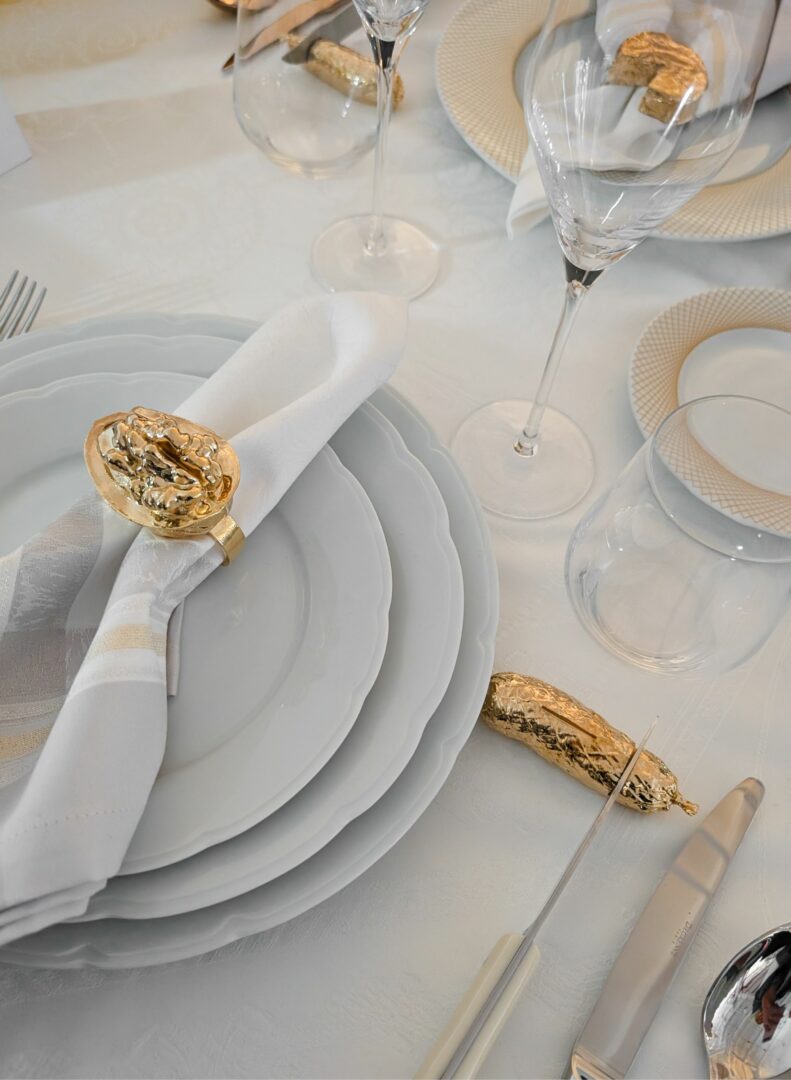 Un éclat d’or, une silhouette sculptée, un clin d’œil à la gastronomie française… Les nouveaux ronds de serviette et portes couverts Ferdie en bronze, plaqué or ou argent, réinventent le détail. Ils deviennent de discrets éclats d’art, capables de révéler toute la table en un instant.