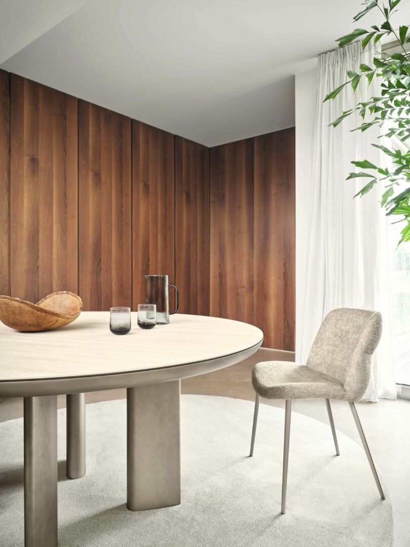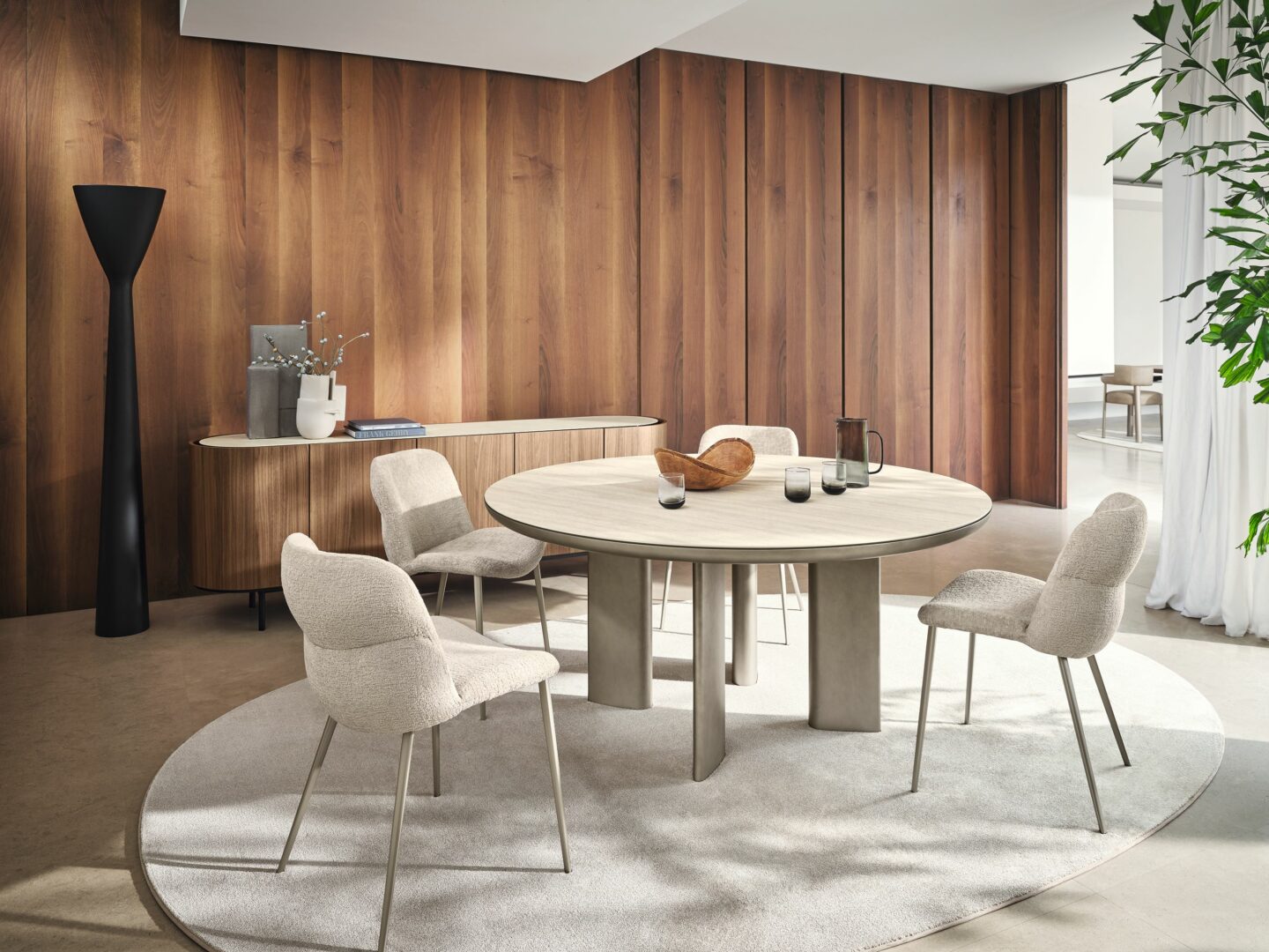 Calligaris propose du renouveau dans ses collections avec un élan de modernité. Une lueur à la fois captivante et chaleureuse émane de l’ensemble, portée par les coloris sobres et naturels du mobilier, à l’image de la table Yoroi et de son piètement en bois strié, ou encore de l’iconique buffet Lake, dévoilé ici dans un format plus minimaliste.