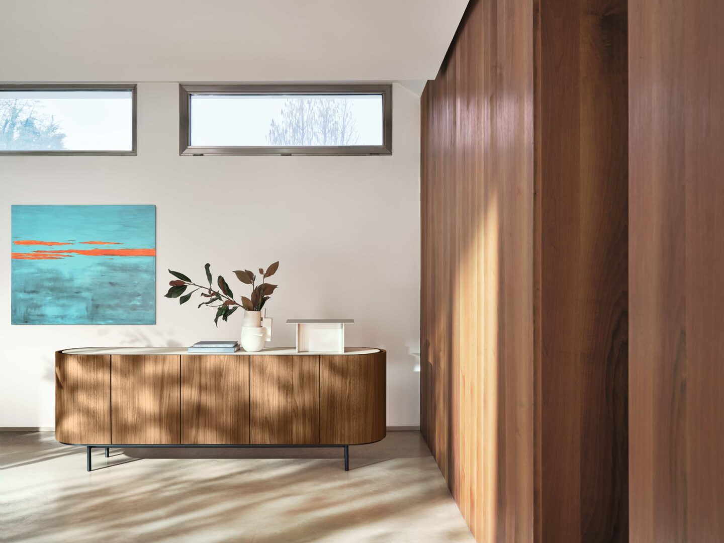Buffet haut Lake – Design Busetti Garuti Redaelli – Structure en placage avec plateau en céramique et piètement en métal