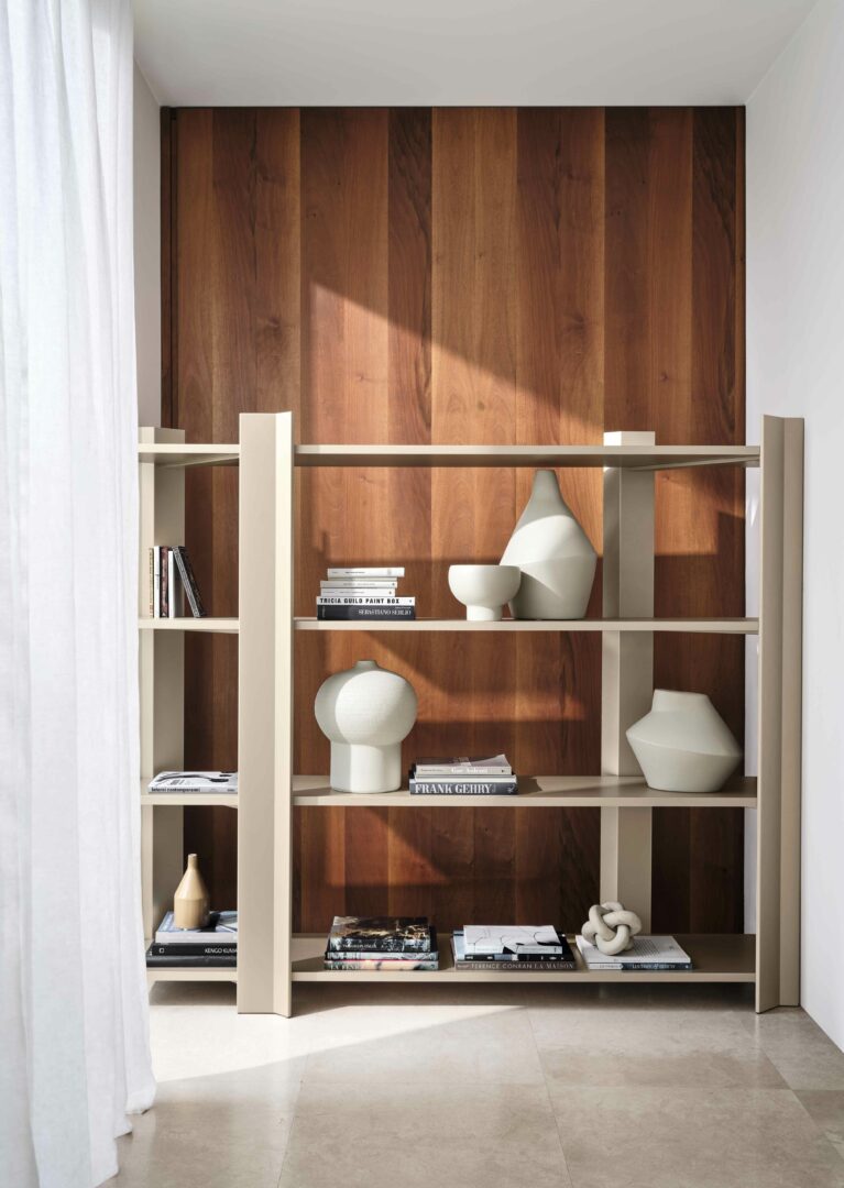 Bibliothèque Wu – Design Mask design – Structure métal et étagères laquées