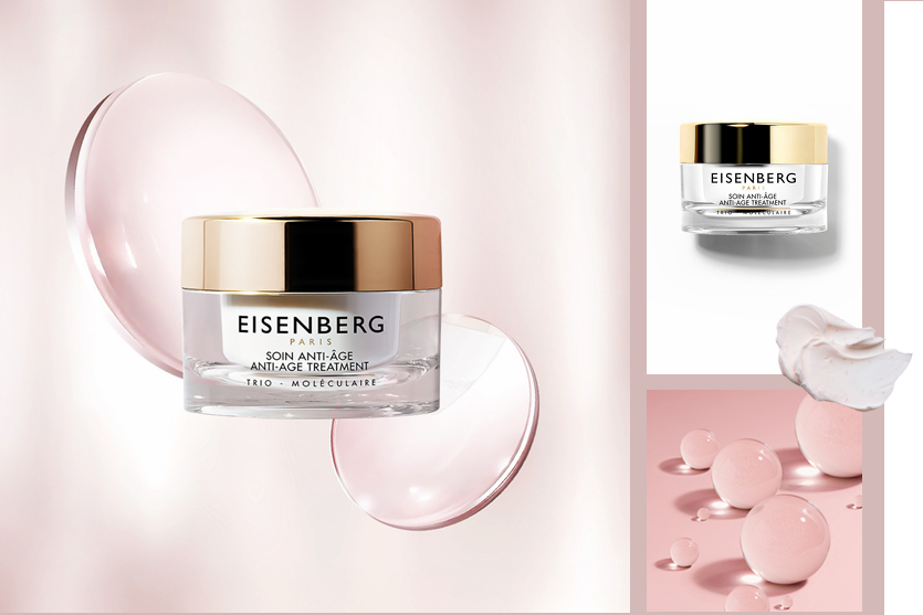 Depuis sa création, Eisenberg Paris, marque familiale avec des valeurs fortes et une identité unique grâce à la riche expérience de son fondateur José Eisenberg dans le monde de la beauté et de la recherche en Haute Technologie. La marque de luxe française décline des soins, une ligne de maquillage ainsi que des parfums pour femmes et hommes. Les soins Eisenberg sont conçus grâce à la formule Trio-Moléculaire®, une innovation brevetée -exclusive à Eisenberg- qui régénère, énergise et oxygène la peau, pour préserver durablement sa jeunesse et son éclat naturel. Trois soins pour trois actions complémentaires contre les signes du vieillissement : réduction des rides, raffermissement et hydratation intense : Masque tenseur remodelant, Sérum régénérant liftant, Soin anti-âge.