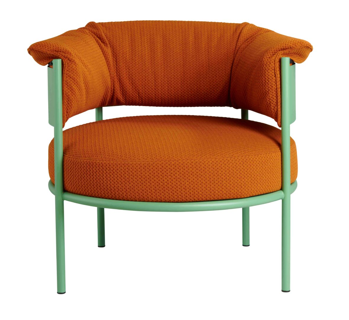 1. Fauteuil Kani Outdoor – design Toshio Yano – Roche Bobois – Fauteuil outdoor avec coque tressée en rotin synthétique, piètement en acier époxy (plusieurs finitions) – L. 94 x H. 72 x P. 66 cm / 2. Tissu circulaire Cabriolet Col. 6 Menthe à L’Eau - Archives Susty Fabrics – Sustyfabrics.com – Matière / 3. Table BOW – design Piks Design – Roche Bobois – plateau en Grès émaillé coloré et piètement en bois massif Iroko teinté – ∅. 40 x H. 60 cm / 4. Tissu circulaire Brera Largo Lapis – Archives Designers Guild – Sustyfabrics.com – 100% Lin / 5. Bougie coupe Tamegroute senteur Menthe et thé – Côté Bougie Marrakech – Mèche 100% coton d’Italie, cire de soja et parfum réalisé à Grasse – ⌀. 14 x H. 17 cm / 6. Table Catalina – design Stephen Burks – Roche Bobois – Table de repas éco-conçue. Plateau rectangulaire en céramique teintée dans la masse, épaisseur 12 mm. Piétement en acier inox qualité marine, résistant en environnement extérieur, laqué époxy – L. 240 x H. 75 x P. 110 cm – Prix sur demande – Chaise AVA – design Song Wen Zhong – Bridge éco-conçu et empilable, réalisé en injection (technique Gas Moulding) de polypropylène recyclé laqué mat (plusieurs couleurs) – L. 60 x H. 80 x P. 57 cm