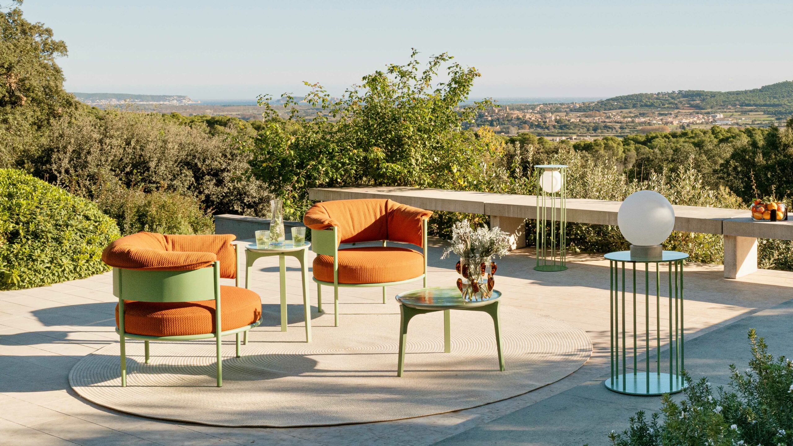 Pensées comme des pièces signatures, les créations de mobilier structurent les volumes avec justesse et caractère. Chaque élément affirme une présence, entre force et légèreté, transformant terrasses, jardins et balcons en compositions vivantes. Au sol, les tapis dessinent des paysages graphiques d’une grande délicatesse, tandis que les luminaires, véritables objets d’art, sculptent l’espace et accompagnent les transitions du jour vers la nuit.