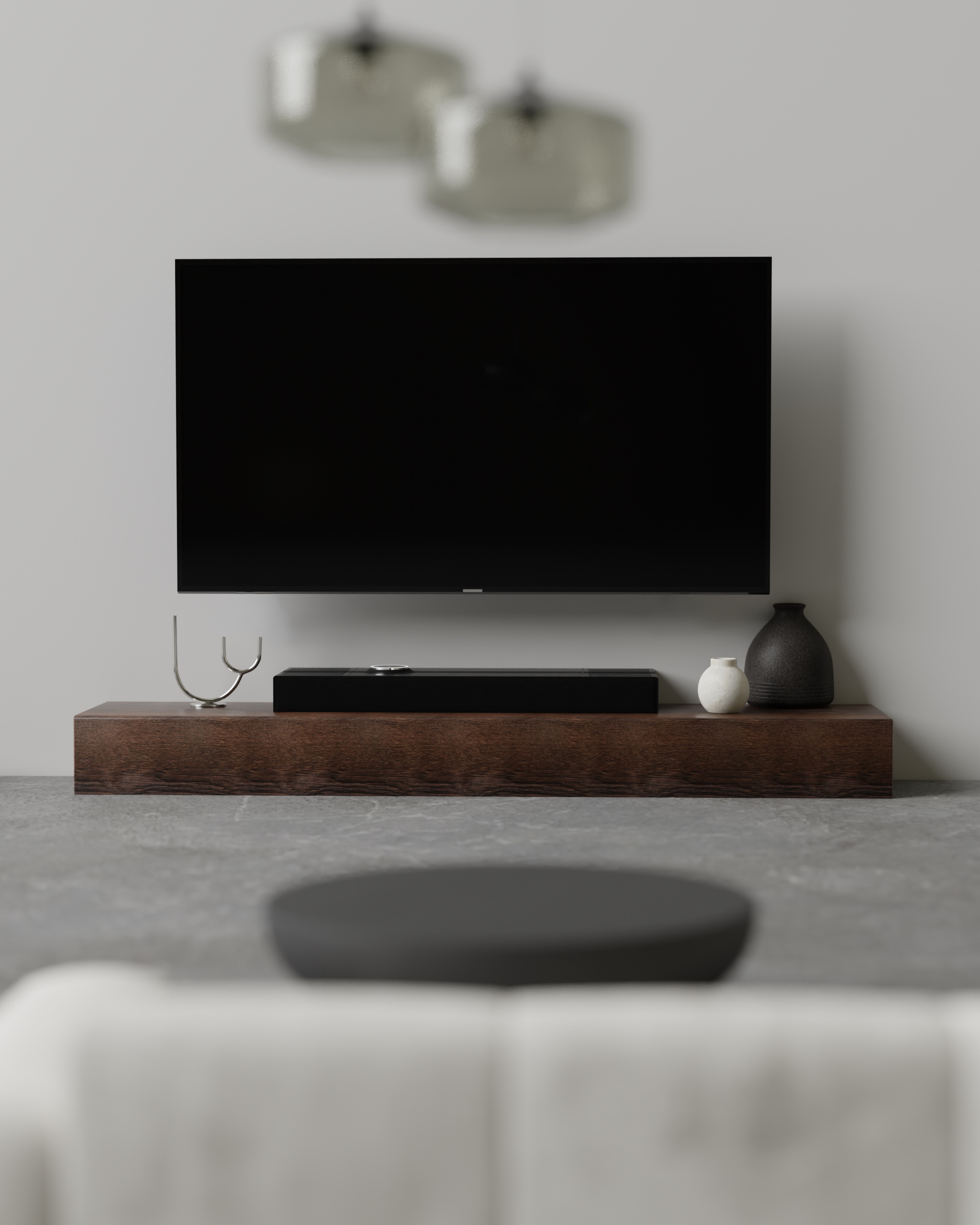 -Une expérience Home Cinéma immersive avec un système tout-en-un. Un seul élément, discret et puissant, à positionner sur un meuble.