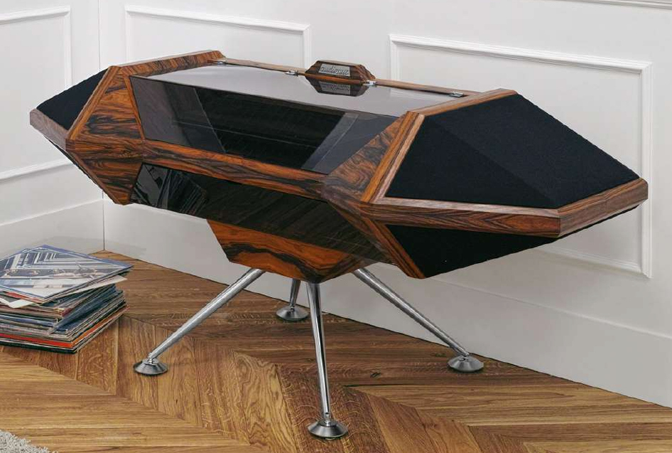 Sa géométrie futuriste évoque les salles de contrôle des vaisseaux tout en restant ancrée dans l’artisanat.