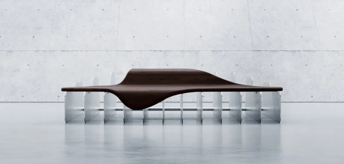Pour Jacques Cartier, Immaterial est une exploration de la forme. Pour Vestre, c’est une manière d’ouvrir son design scandinave à de nouveaux horizons, plus sensibles et expérimentaux. Le banc, suspendu entre ciel et sol, se détache du mobilier traditionnel. Sa silhouette semble flotter. Le bois y devient fluide, presque vivant. Il invite à la pause et au silence. Le miroir, dressé comme une faille verticale, capte la lumière, la déforme et la renvoie.