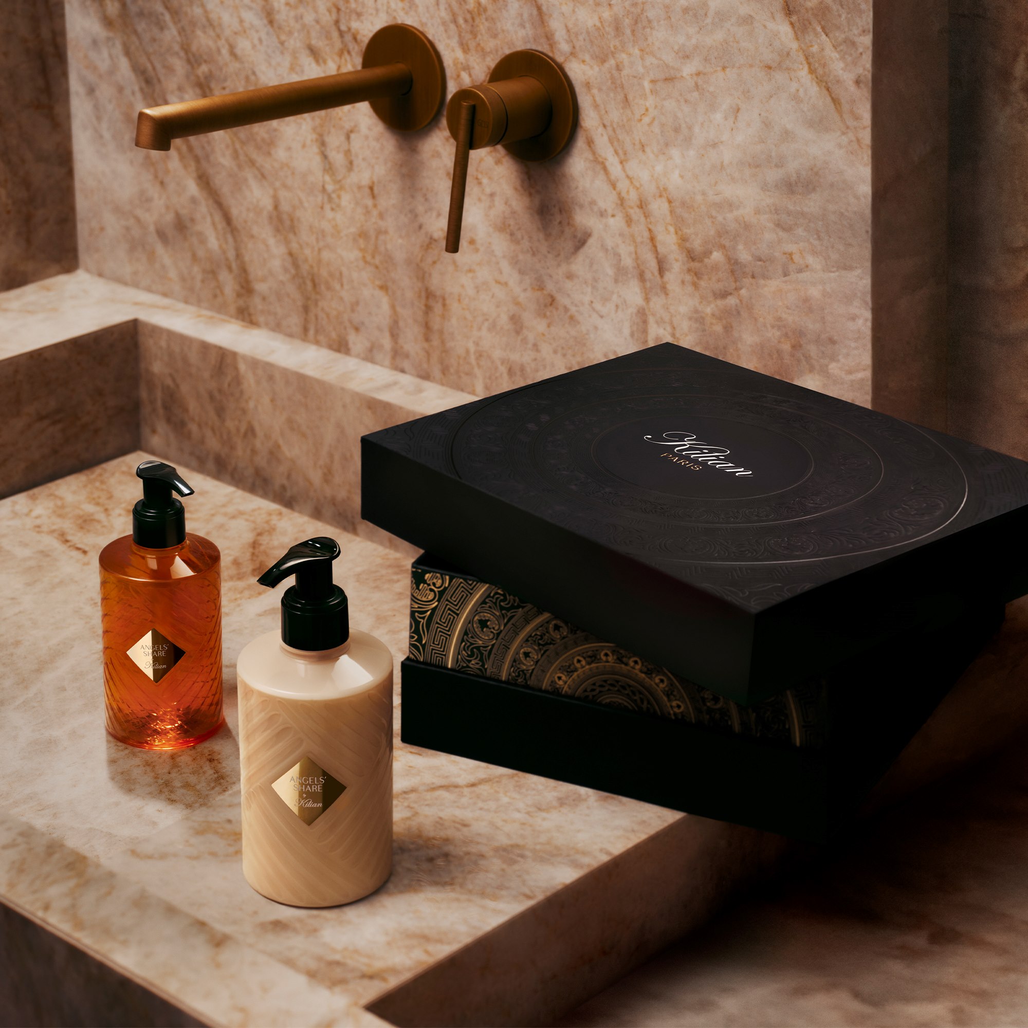 Kilian Paris présente La Maison Kilian : le nouveau rituel bien-être, avec une collection de Bain & Corps et de Bougies parfumées.