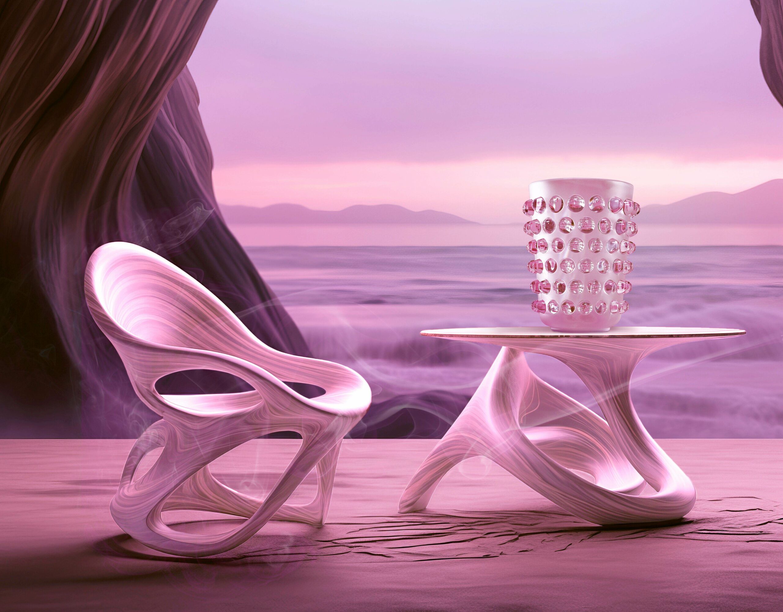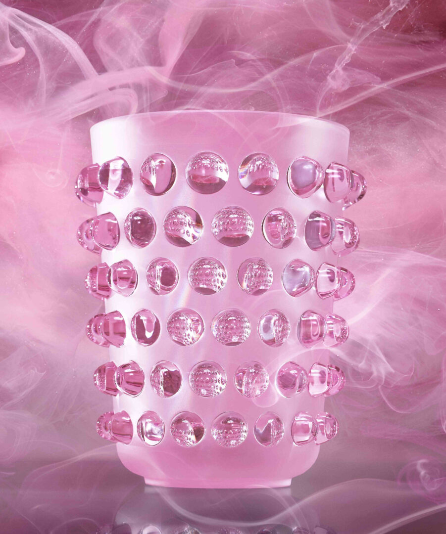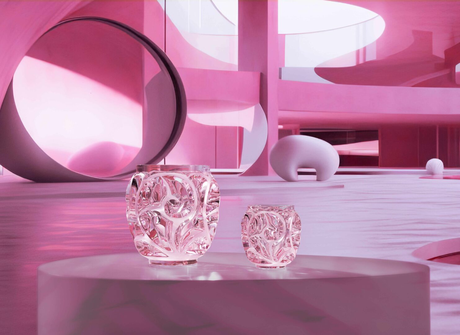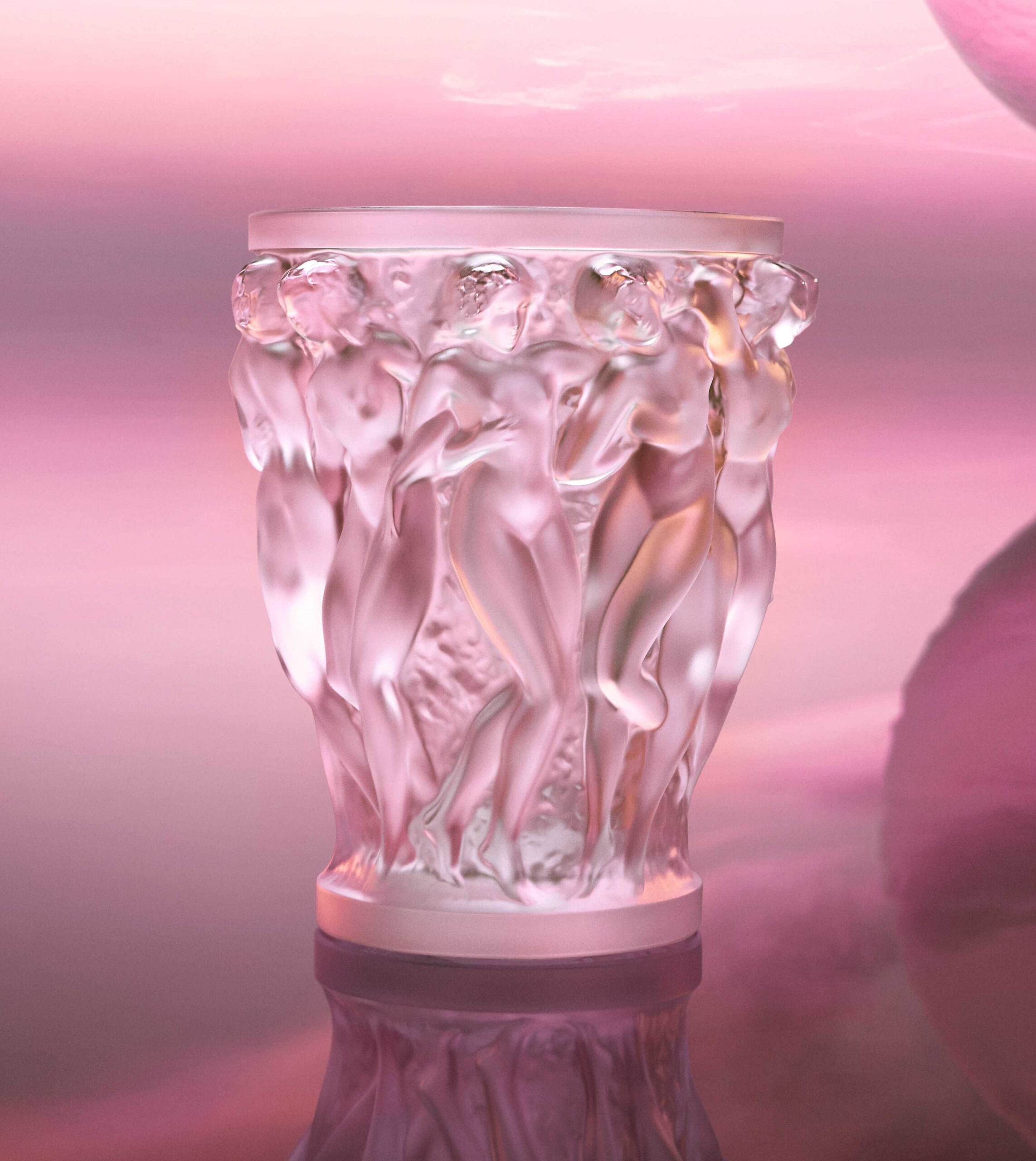 La collection Iconics Rose Nebula, inspirée du grec ancien Nephélē (« nuage »), se compose au total de douze pièces emblématiques, telles que les vases Tourbillons, Mossi et Bacchantes, ou la coupe Champs-Élysées qui s’habillent d’un voile rose inédit et entrent dans une nouvelle dimension. Entre vestiges d’une ère antique et projection 3D, prêtresses de Bacchus, panthères et oiseaux enchanteurs voyagent dans un espace-temps irréel.