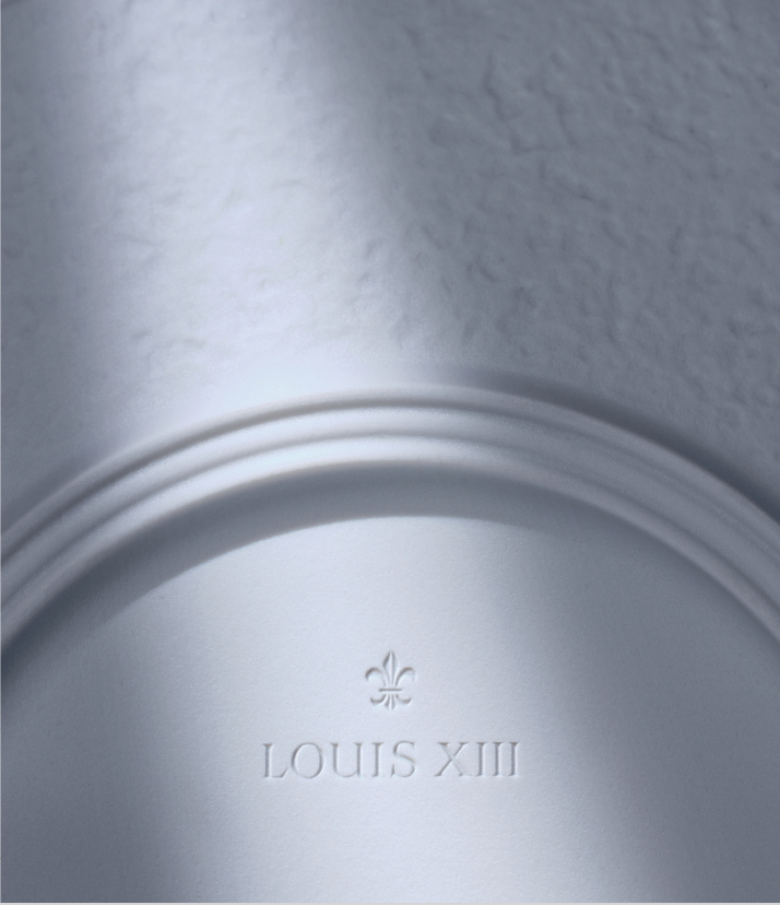 Trois cercles presque invisibles dissimulés au dos de chaque pièce évoquent les cerclages de bois de châtaignier des tierçons LOUIS XIII, qui bercent les eaux-de-vie durant leurs décennies de vieillissement.