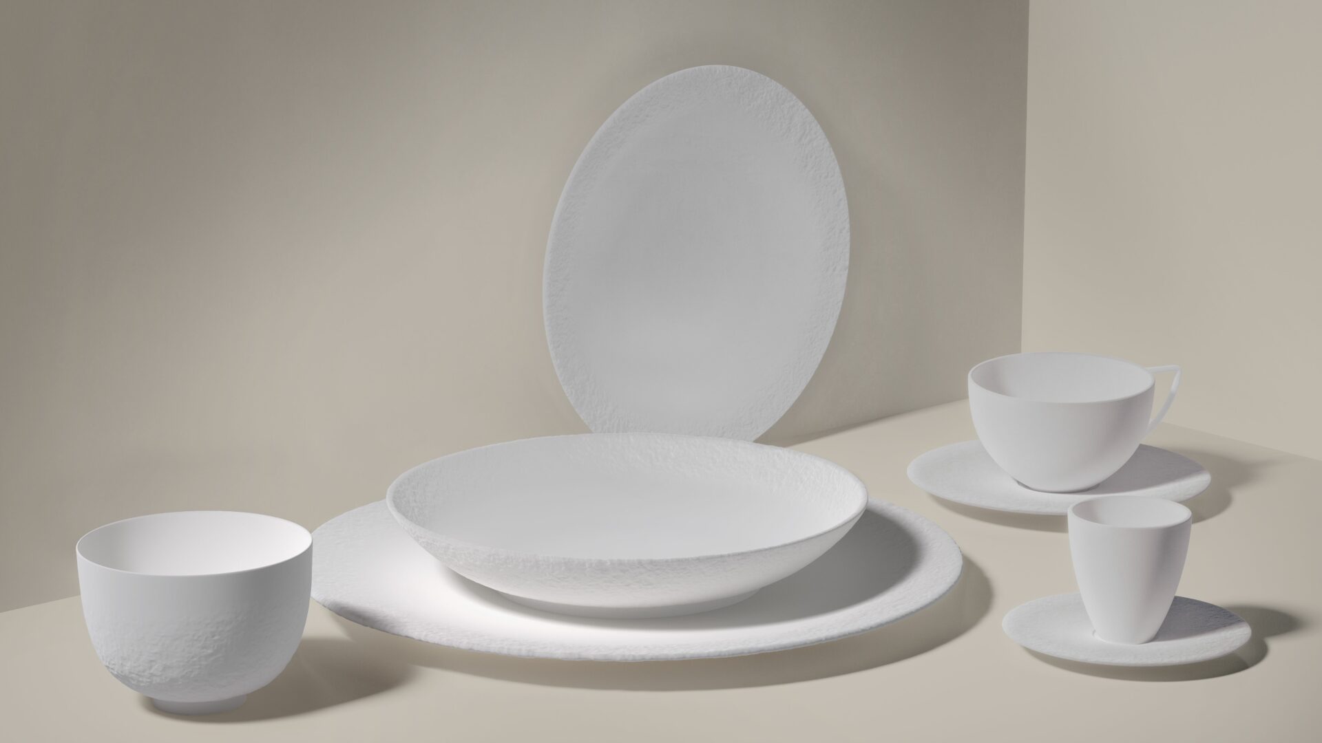 Avec Ode à la Matière, la porcelaine devient mémoire du terroir. Sous les doigts, une texture minérale subtile évoque le sol calcaire de la Grande Champagne, premier cru dont naît l’âme de LOUIS XIII. Grâce à une numérisation 3D d’une précision exceptionnelle, la texture même de la pierre calcaire du Domaine du Grollet a été capturée et transposée sur la porcelaine, créant un lien indissociable entre chaque pièce et son origine.