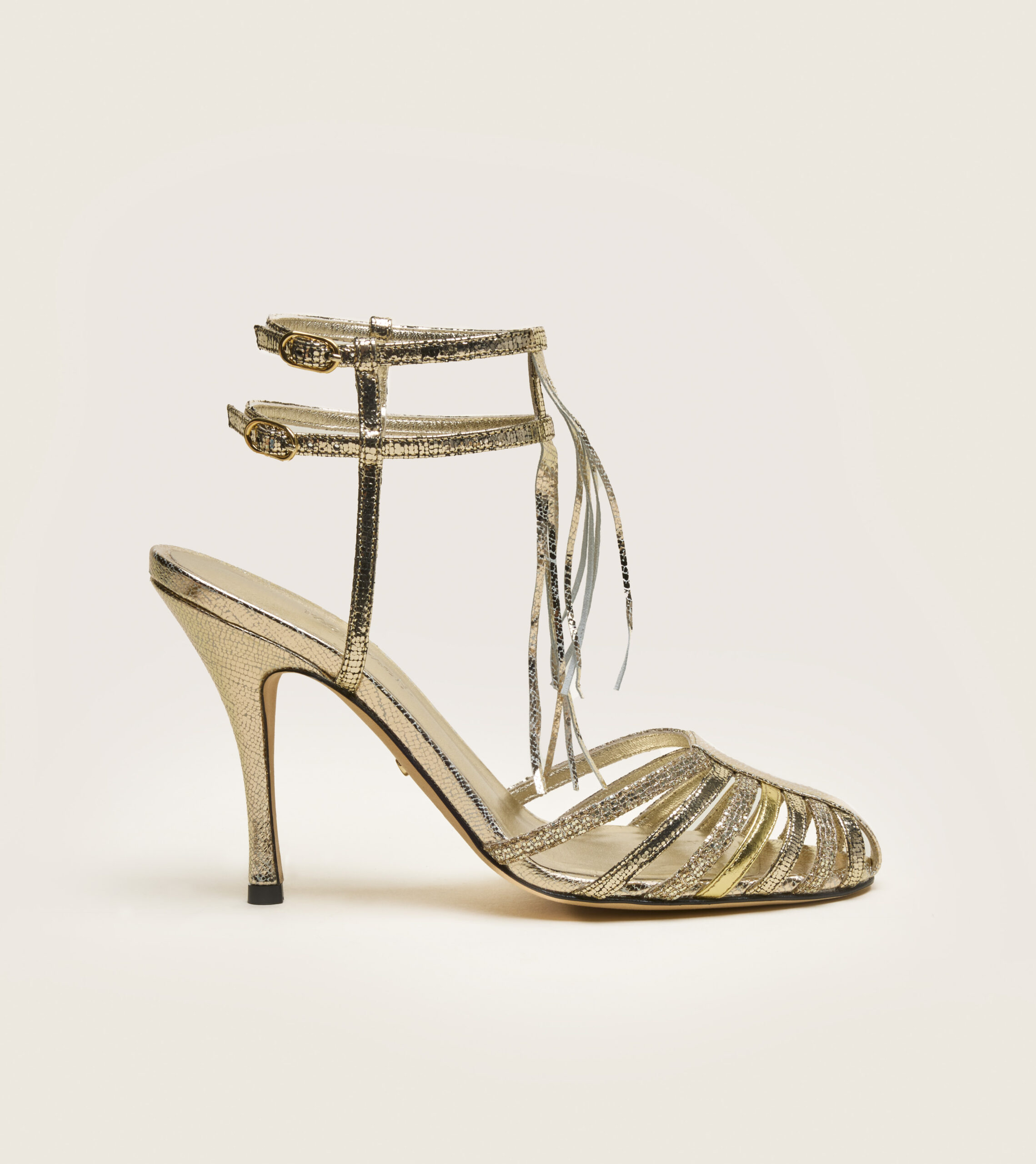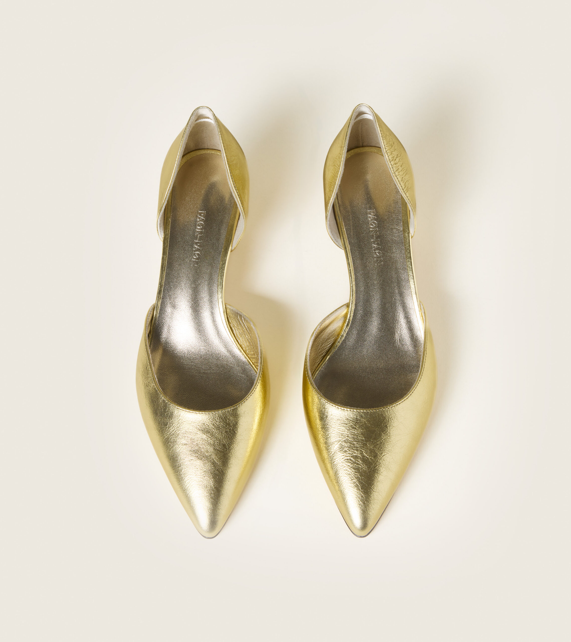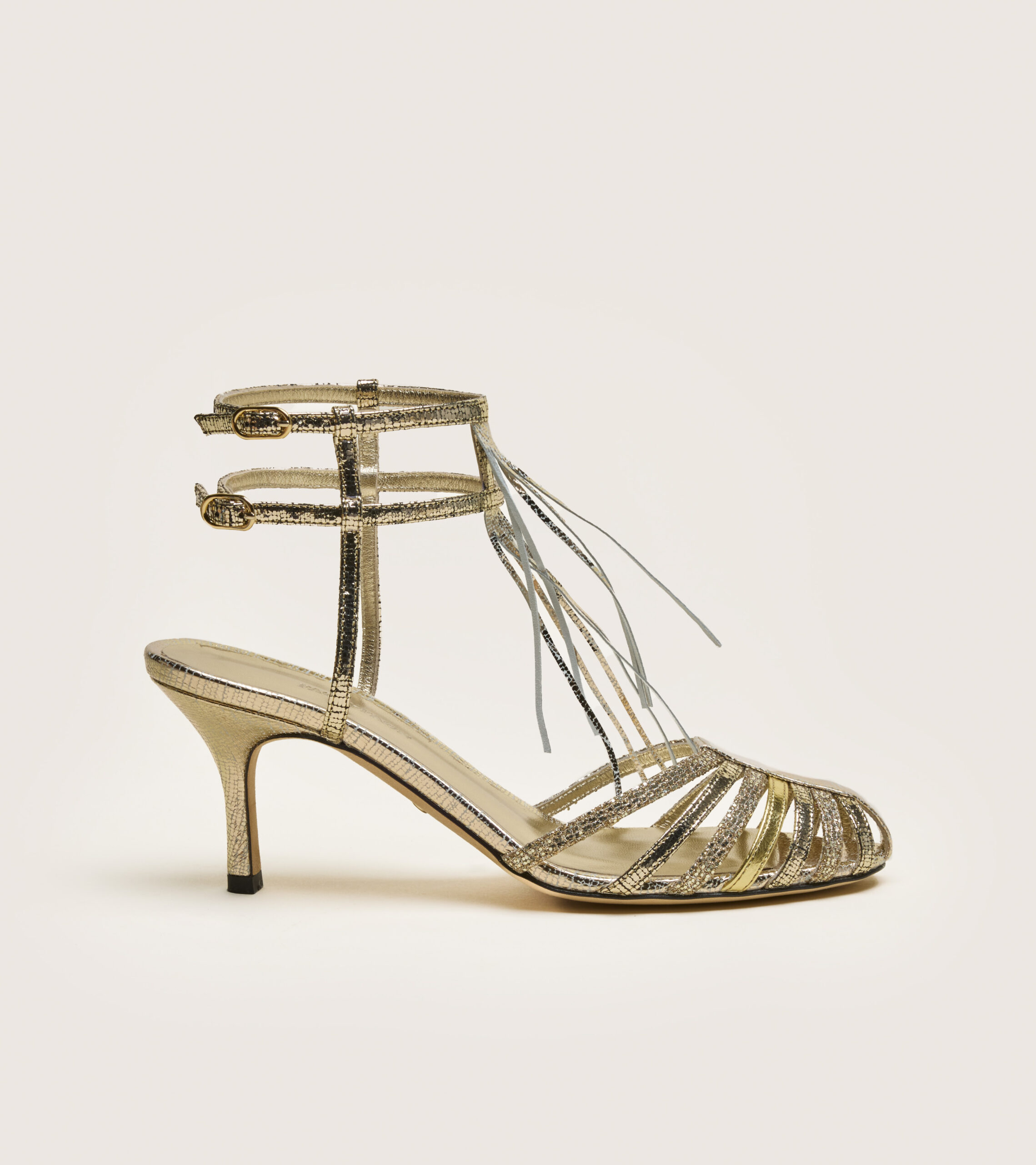 Modèle Mina, en cuir de veau, doublure cuir laminé or, semelle cuir
