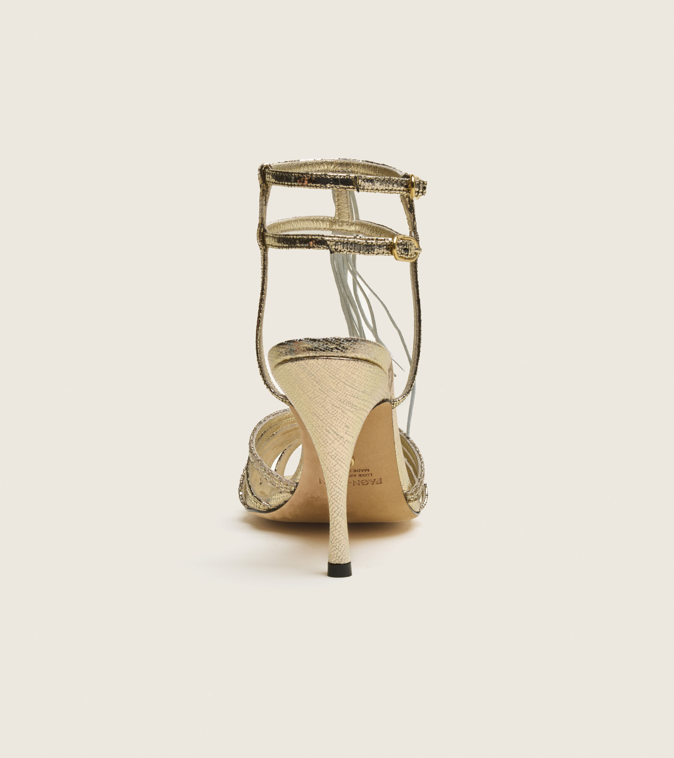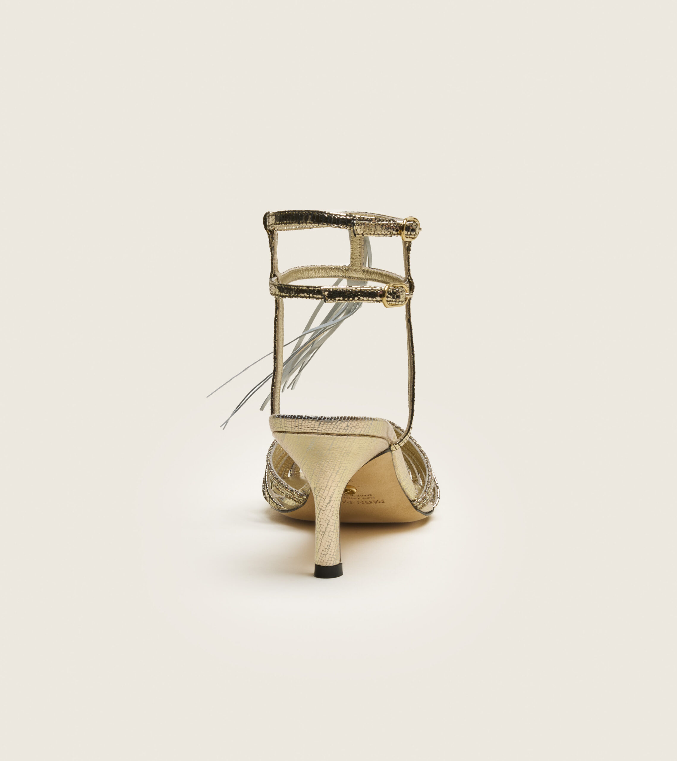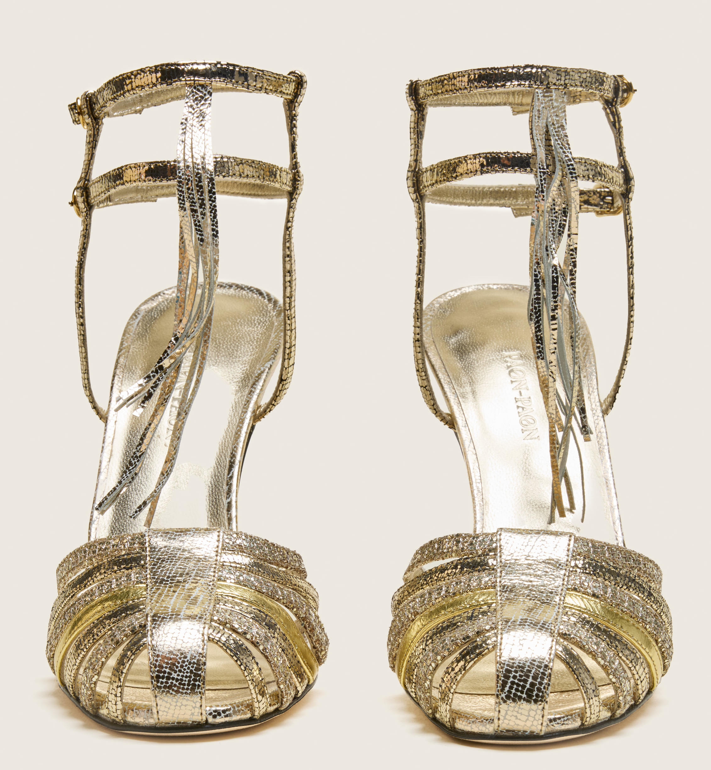 Modèle Mina, en cuir de veau, doublure cuir laminé or, semelle cuir