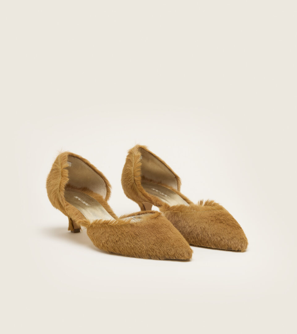 Dessinée par Aurélie Introzzi, Directrice de la création chez Paon-Paon, le modèle Mina réussit le pari d’un soulier à la fois raffiné, original, et ultra agréable à porter. Cette paire d’escarpins en cuir véritable s’affirme déjà comme l’accessoire incontournable des fêtes. Sa teinte Yuta et ses talons de 70 ou 90 mm créent un jeu de contrastes raffiné qui transforme ce soulier en véritable caméléon, à la fois sophistiqué et audacieux, tout en restant élégant. Les subtiles franges complètent cette pièce versatile, faisant de la Mina un escarpin à la fois couture et festif.