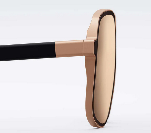Face en acier brossé 301L, traitement PVD – Cadre en aluminium de qualité aéronautique, poli à la main – Charnières flexibles – Branche acétate noir mat avec un insert en aluminium – Chaque paire est numérotée de 1 à 300.