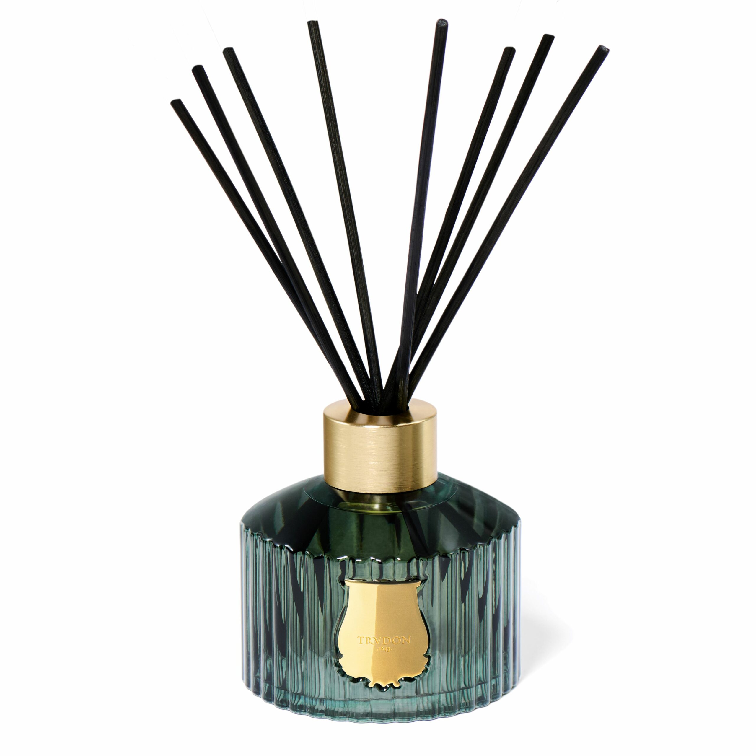 Avec Figuerie, Trudon renoue également avec l’un de ses codes historiques : le céladon. Cette teinte douce et raffinée, emblématique du goût aristocratique français du XVIIᵉ siècle, habille le verre de la collection. Rehaussé d’un marquage à l’or chaud, l’écrin évoque les arts décoratifs de l’époque, où soieries, brocards et décors intérieurs jouaient l’harmonie de ces deux couleurs précieuses.