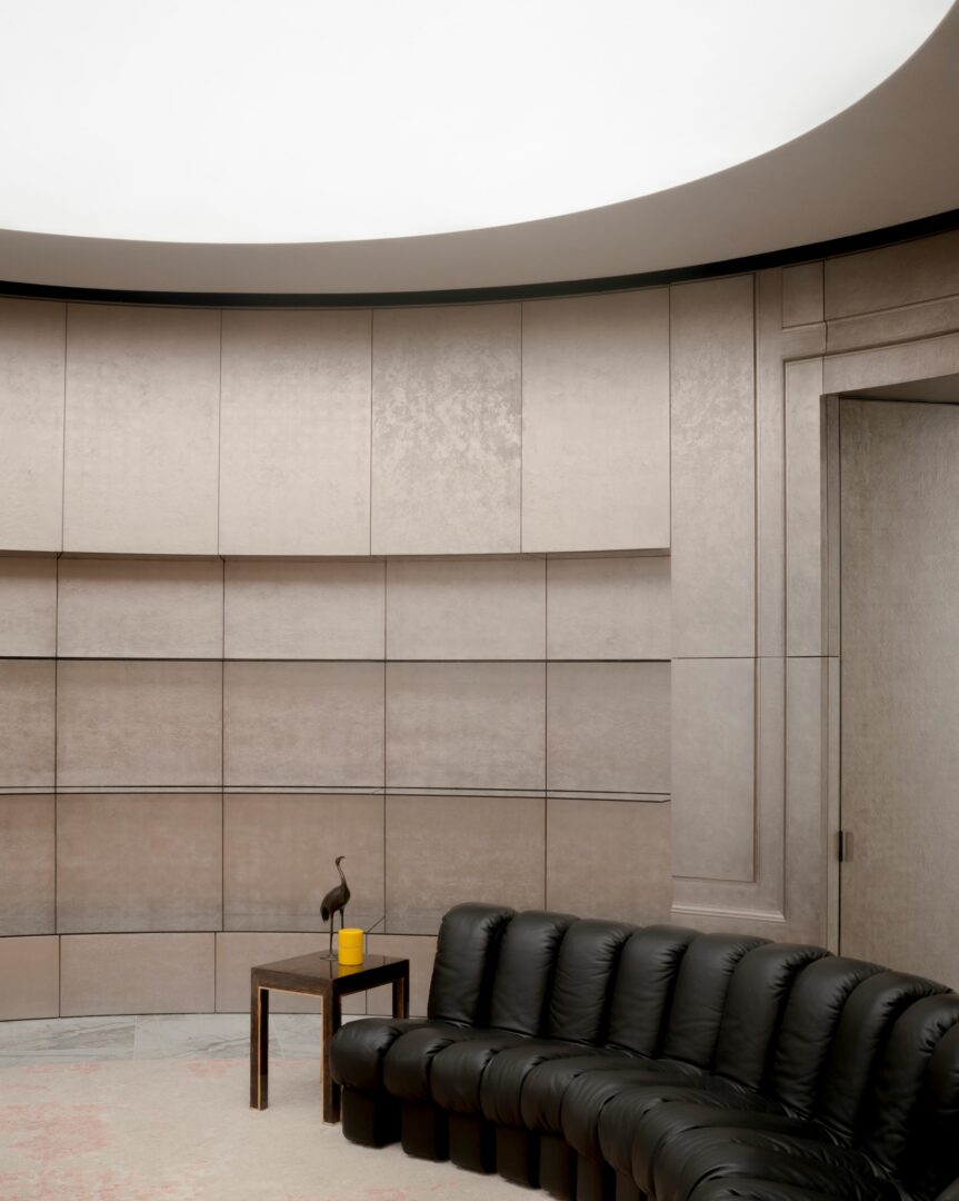 La boutique s’articule sur trois niveaux, imaginés comme une suite de pièces aux atmosphères distinctes -tantôt ouvertes, tantôt feutrées, parfois presque muséales. Chacun de ces espaces impose son propre rythme, révélant les collections avec justesse et retenue. Anthony Vaccarello y insuffle une vision d’une précision absolue : lignes épurées, équilibre maîtrisé, présence affirmée sans jamais céder à l’excès. Une expression subtile du luxe contemporain.