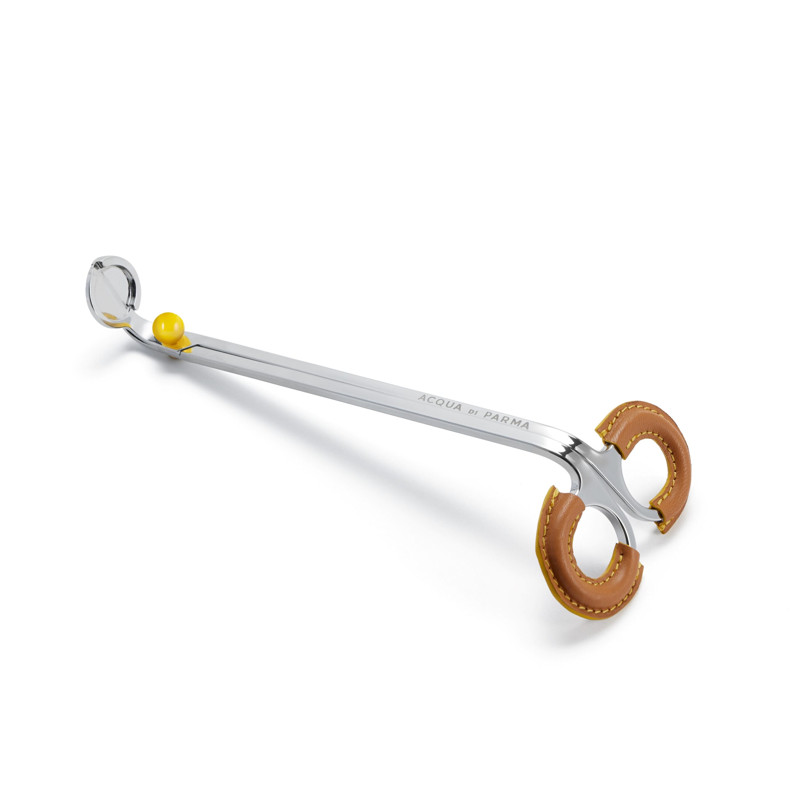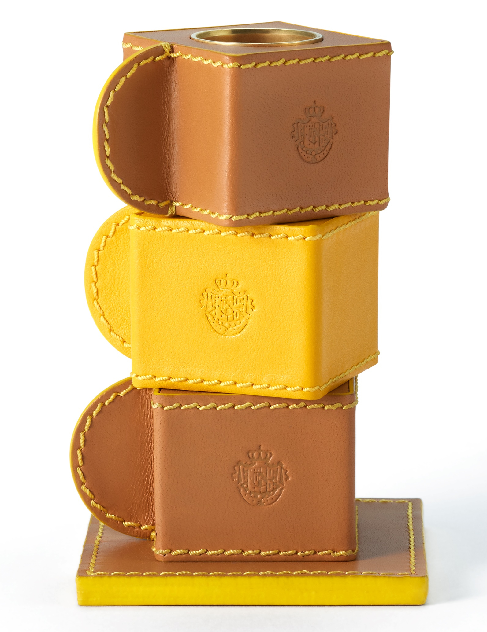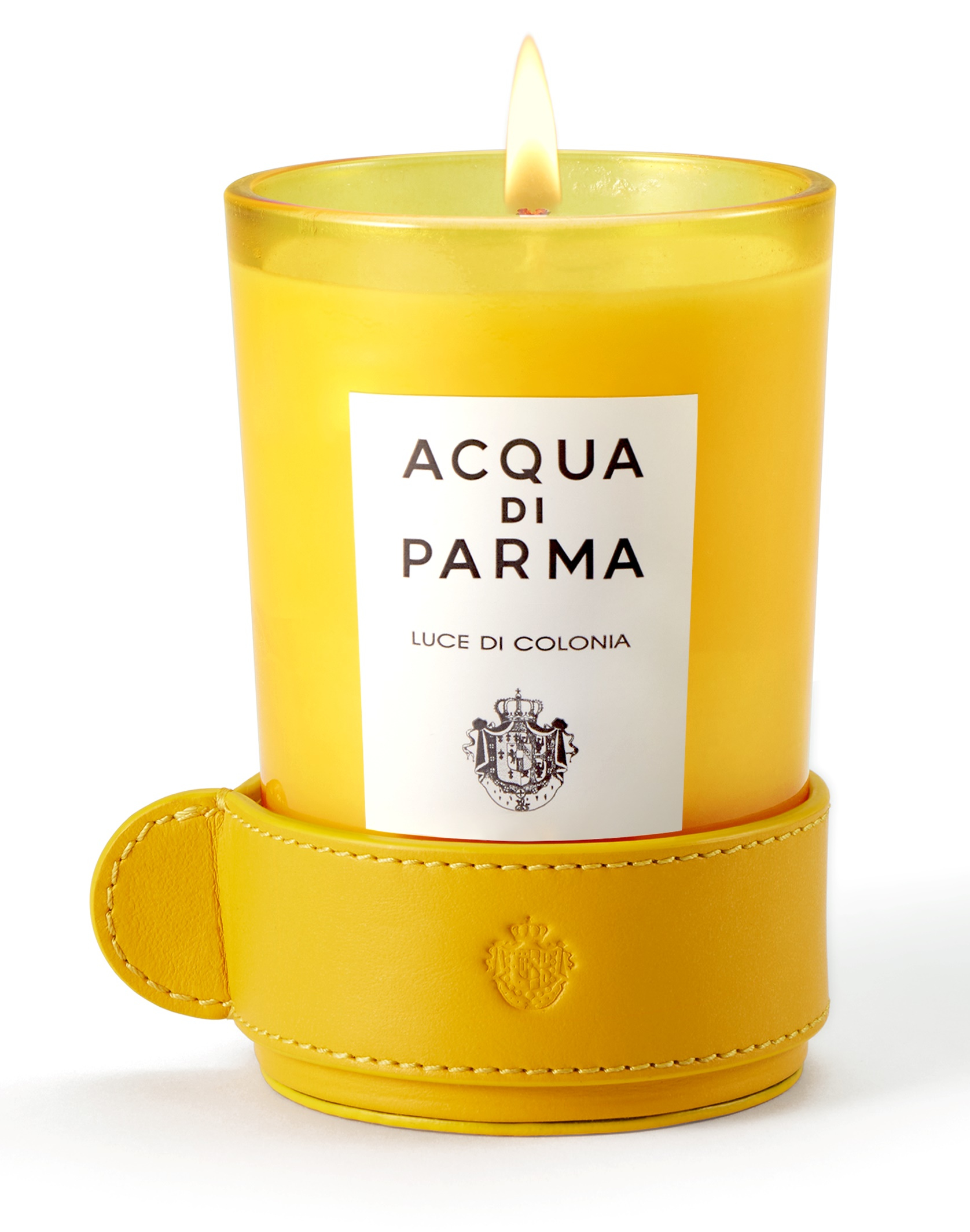 La collection se complète avec le set de chandelles Colonia, un trio de bougies non parfumées destinées à la décoration de table, habillées du jaune emblématique d’Acqua di Parma et ornées d’un blason doré.