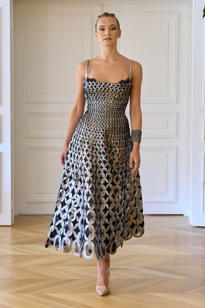 Entre immobilité et mouvement, réflexion et résilience, Saiid Kobeisy nous emporte dans un royaume où la couture devient une armure pour l’âme – digne, provocante et éternellement lumineuse.