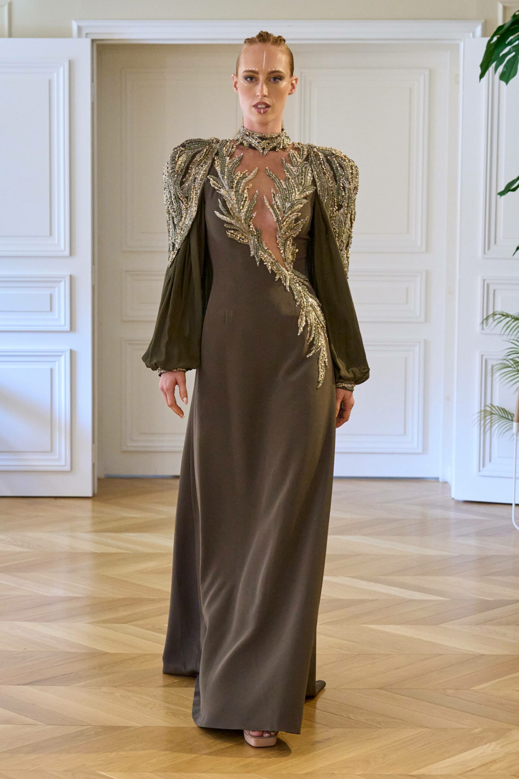 Dans la vision de cette saison, la couture transcende la décoration pour refléter un voyage de transformation personnelle. Chaque silhouette devient un chapitre de l’éveil de l’âme. Les lignes sculptées font écho à la force intérieure, tandis que les drapés fluides dévoilent la beauté de la vulnérabilité. Les broderies complexes tracent les chemins de la mémoire, où les ombres cèdent doucement la place à la lumière.