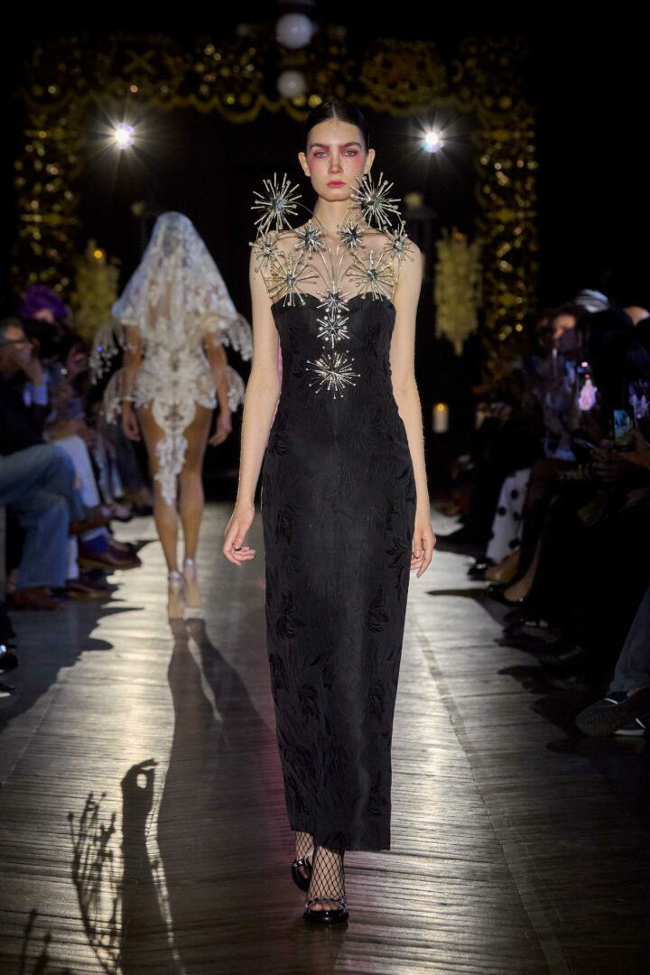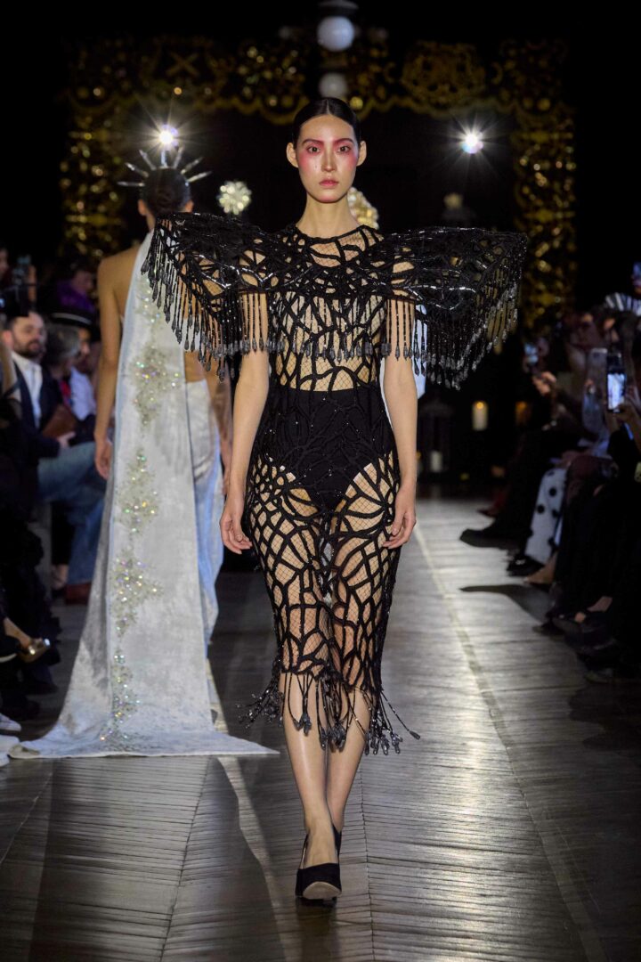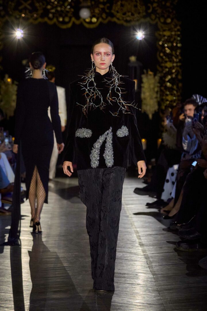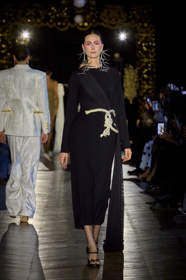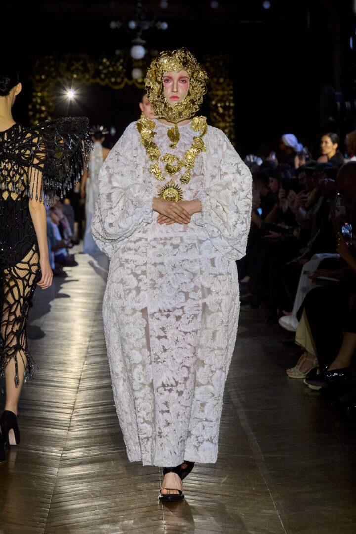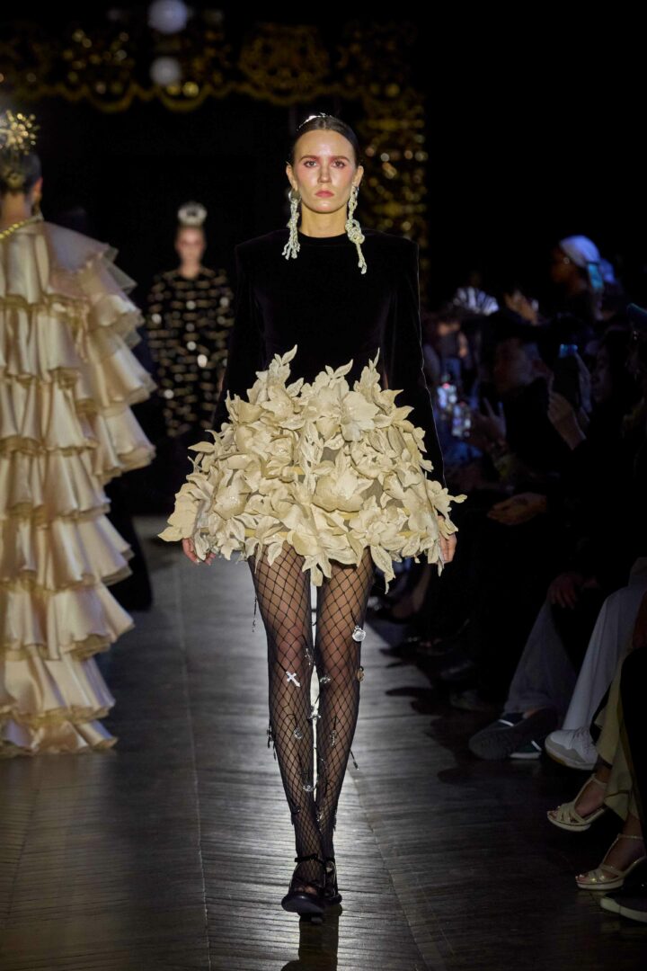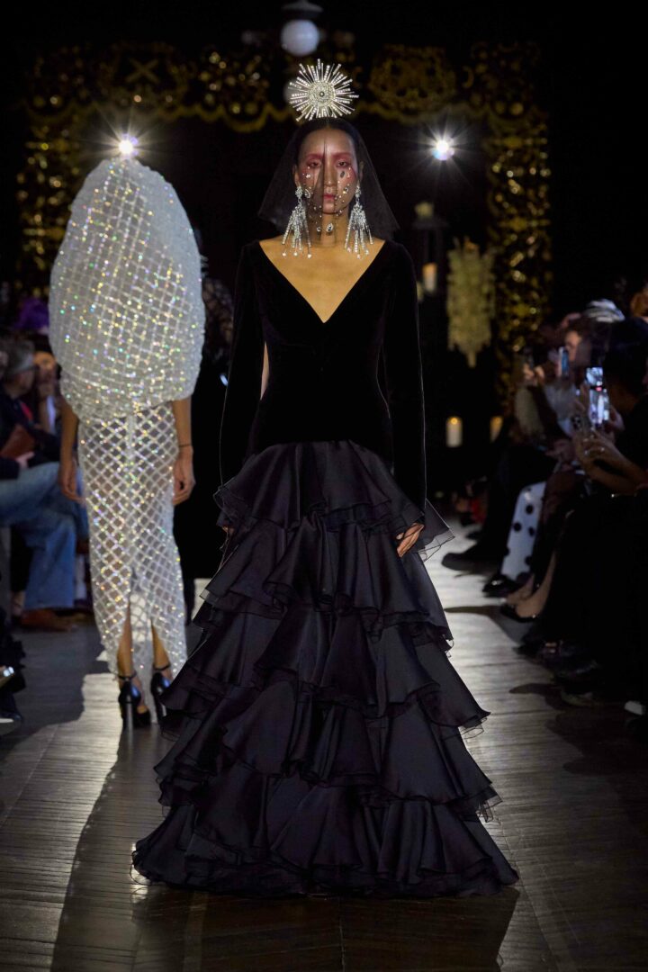 Dévotion et passion lors du défilé Couture, où les invités ont été transportés au cœur d’une procession solennelle de la Semaine Sainte. Une fois de plus, la créatrice réaffirme son engagement à faire rayonner sa culture, cette fois lors de la deuxième journée du Calendrier Officiel de la Haute Couture.