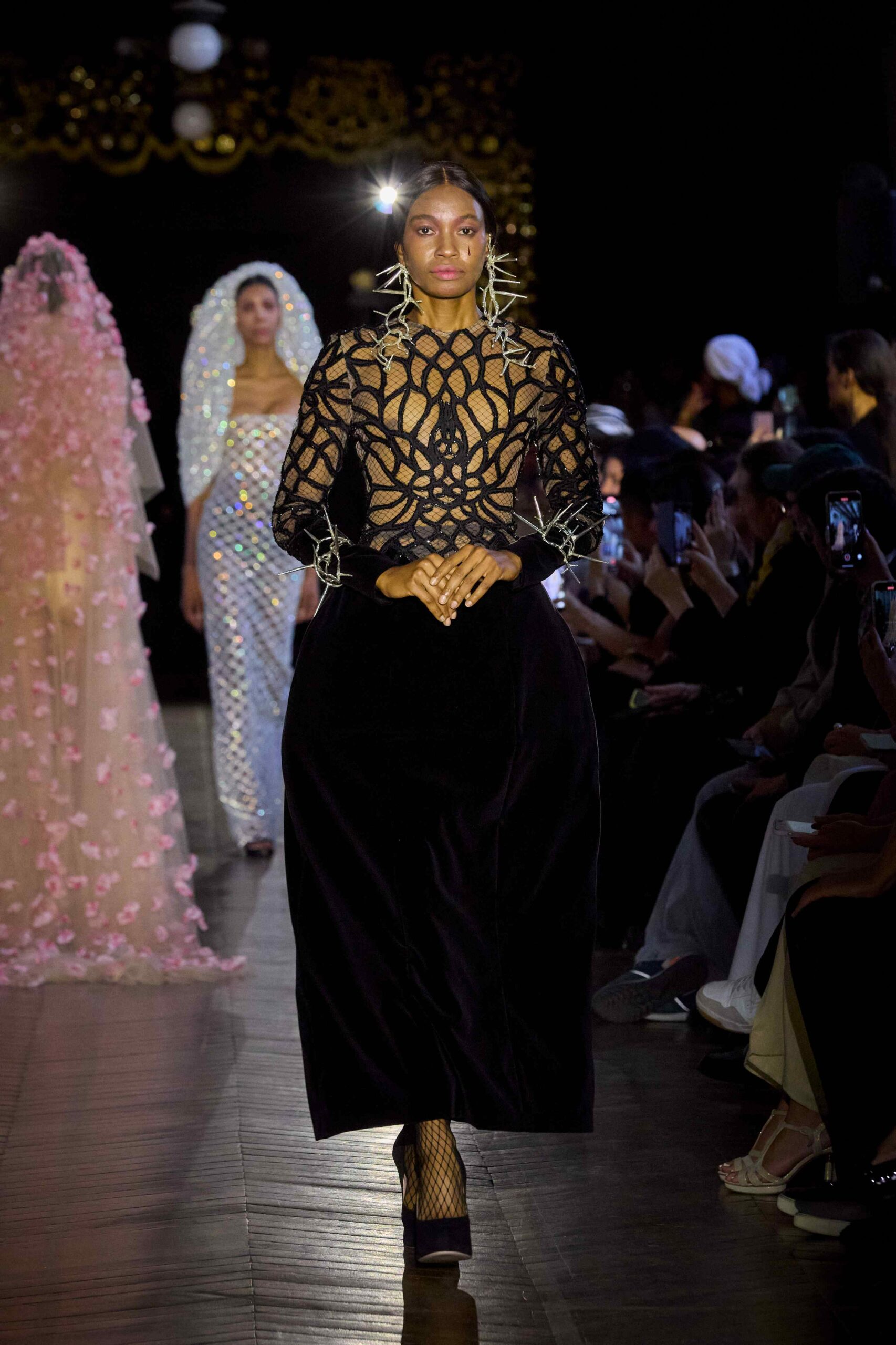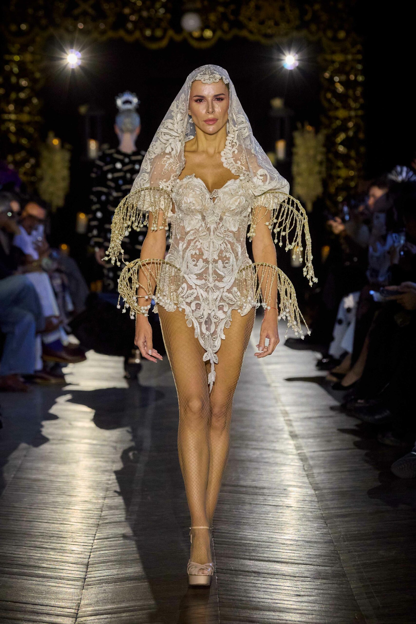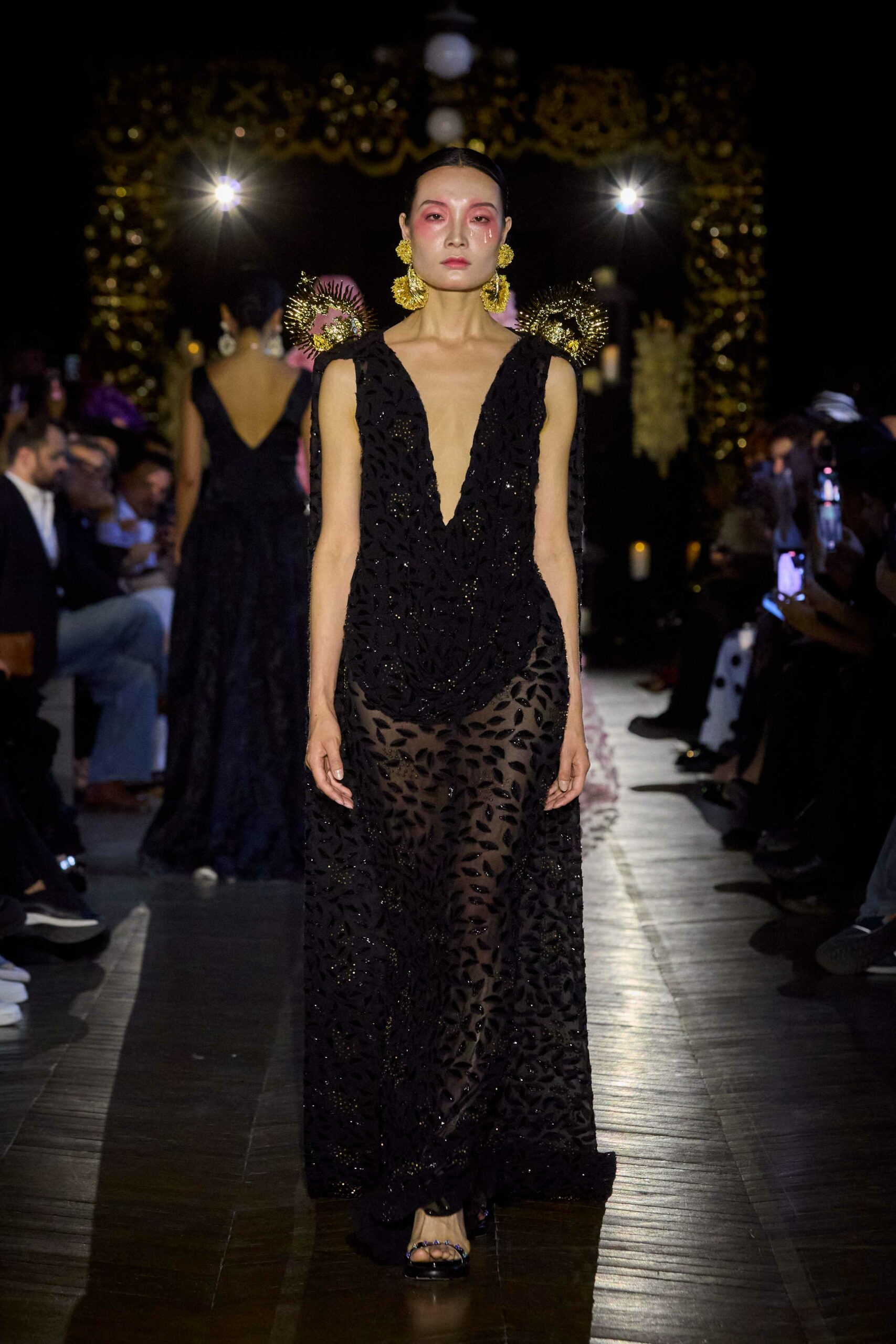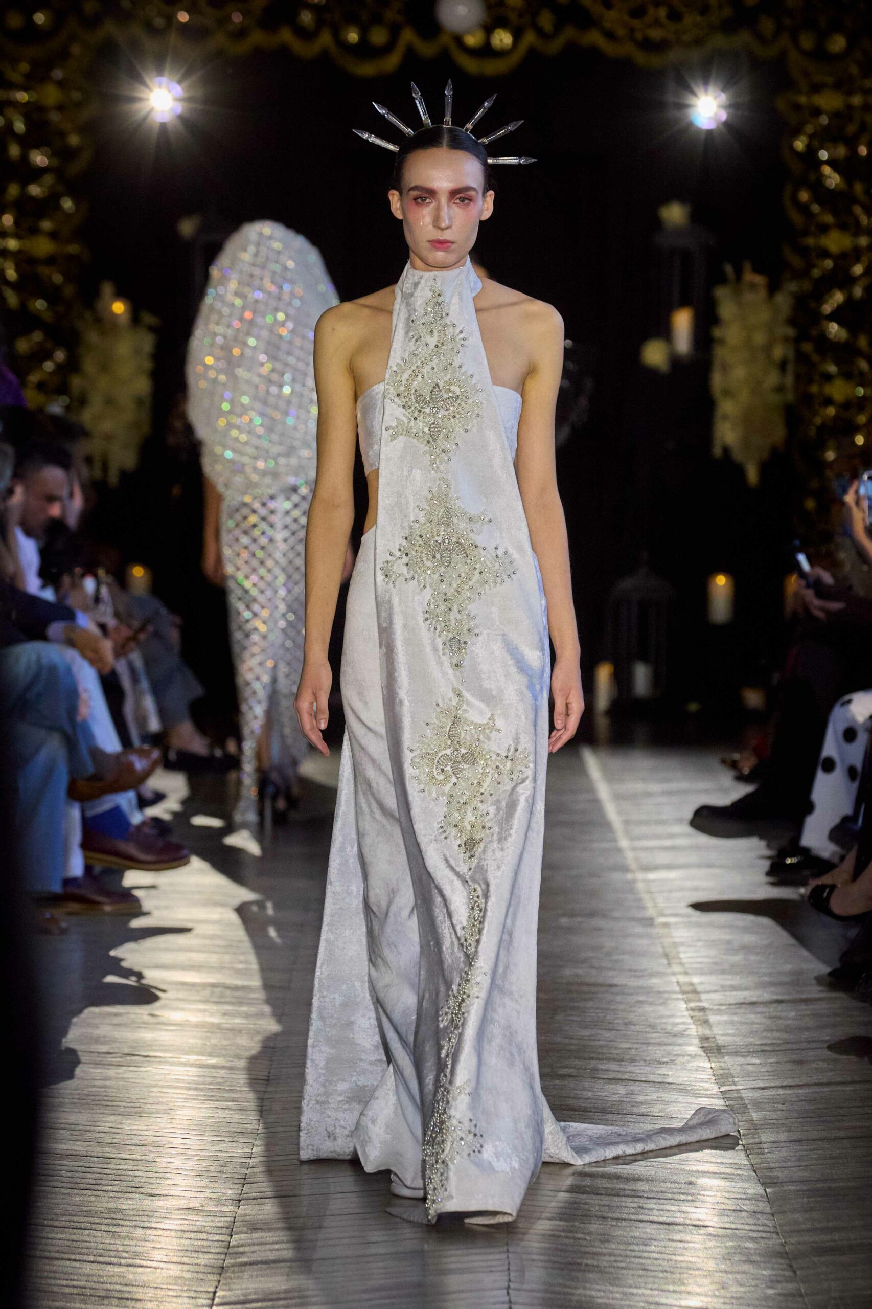 Dévotion et passion lors du défilé Couture, où les invités ont été transportés au cœur d’une procession solennelle de la Semaine Sainte. Une fois de plus, la créatrice réaffirme son engagement à faire rayonner sa culture, cette fois lors de la deuxième journée du Calendrier Officiel de la Haute Couture.