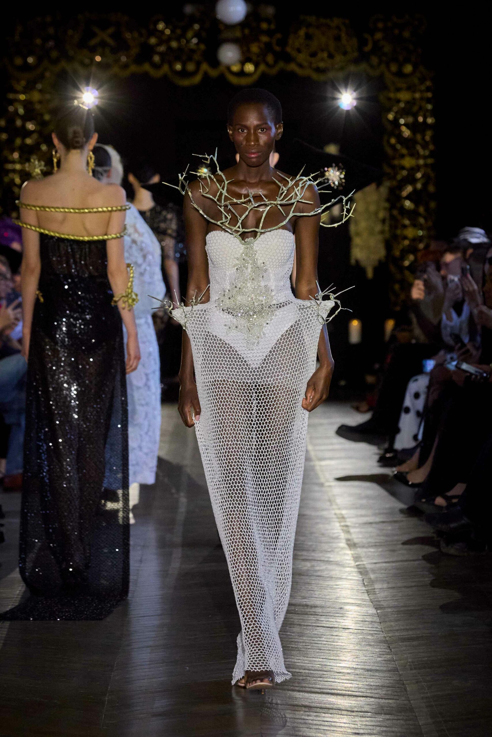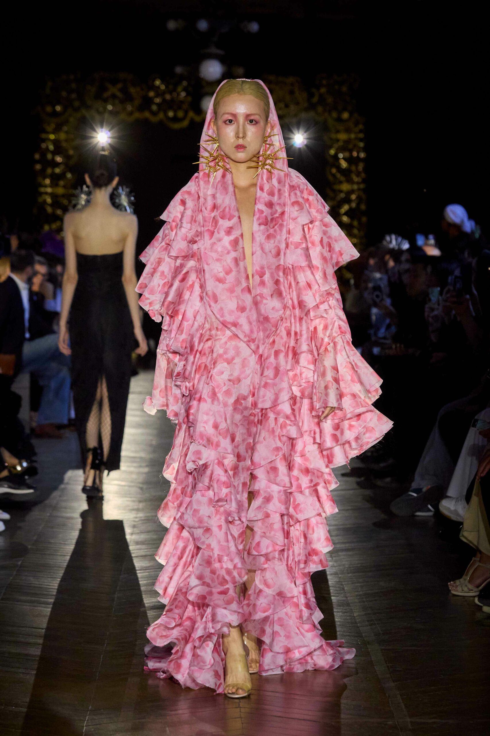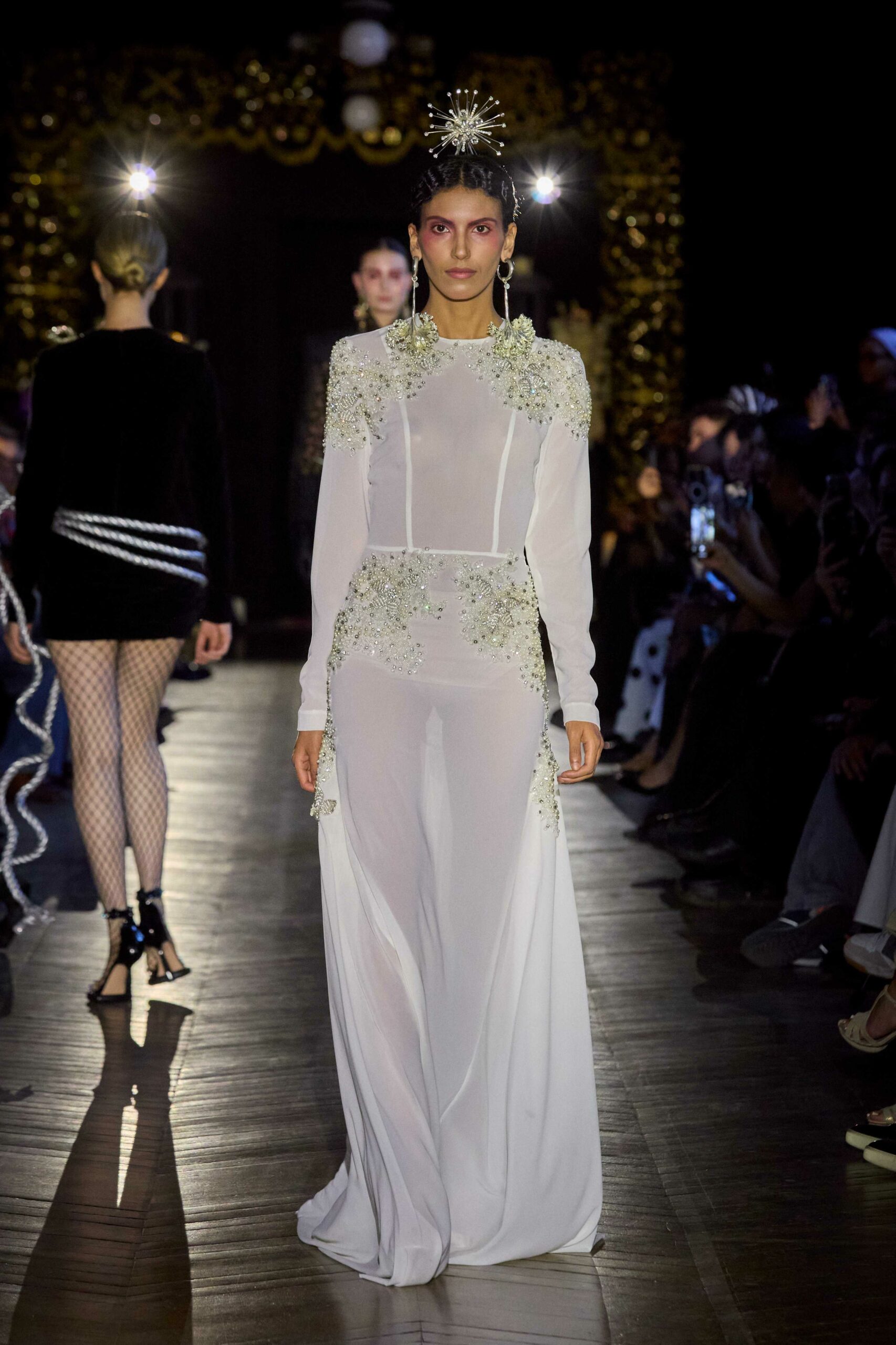 Dévotion et passion lors du défilé Couture, où les invités ont été transportés au cœur d’une procession solennelle de la Semaine Sainte. Une fois de plus, la créatrice réaffirme son engagement à faire rayonner sa culture, cette fois lors de la deuxième journée du Calendrier Officiel de la Haute Couture.