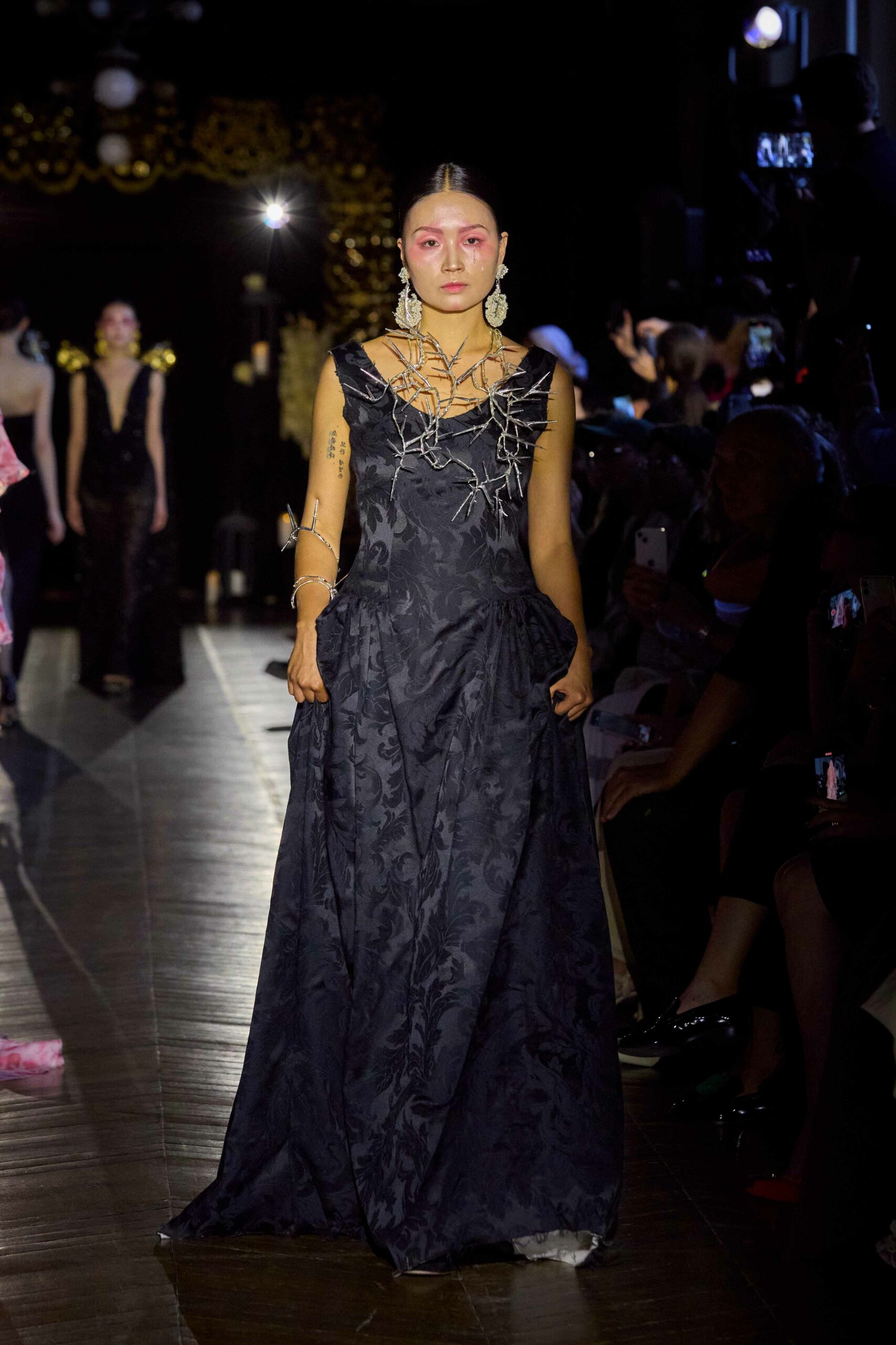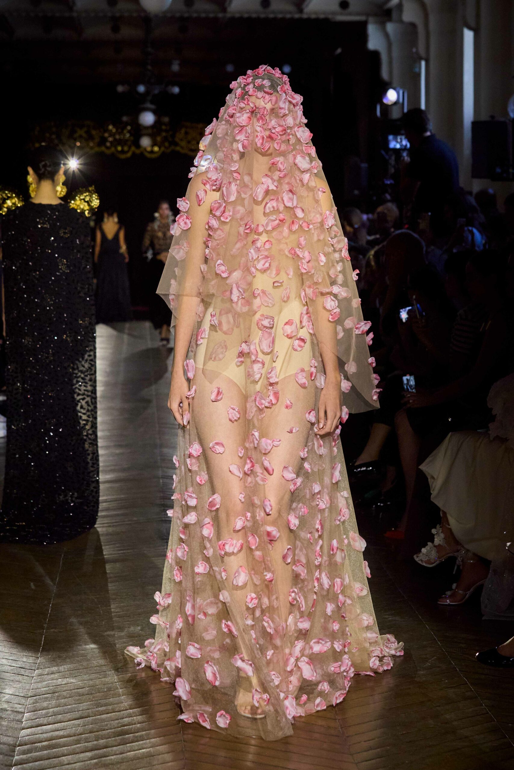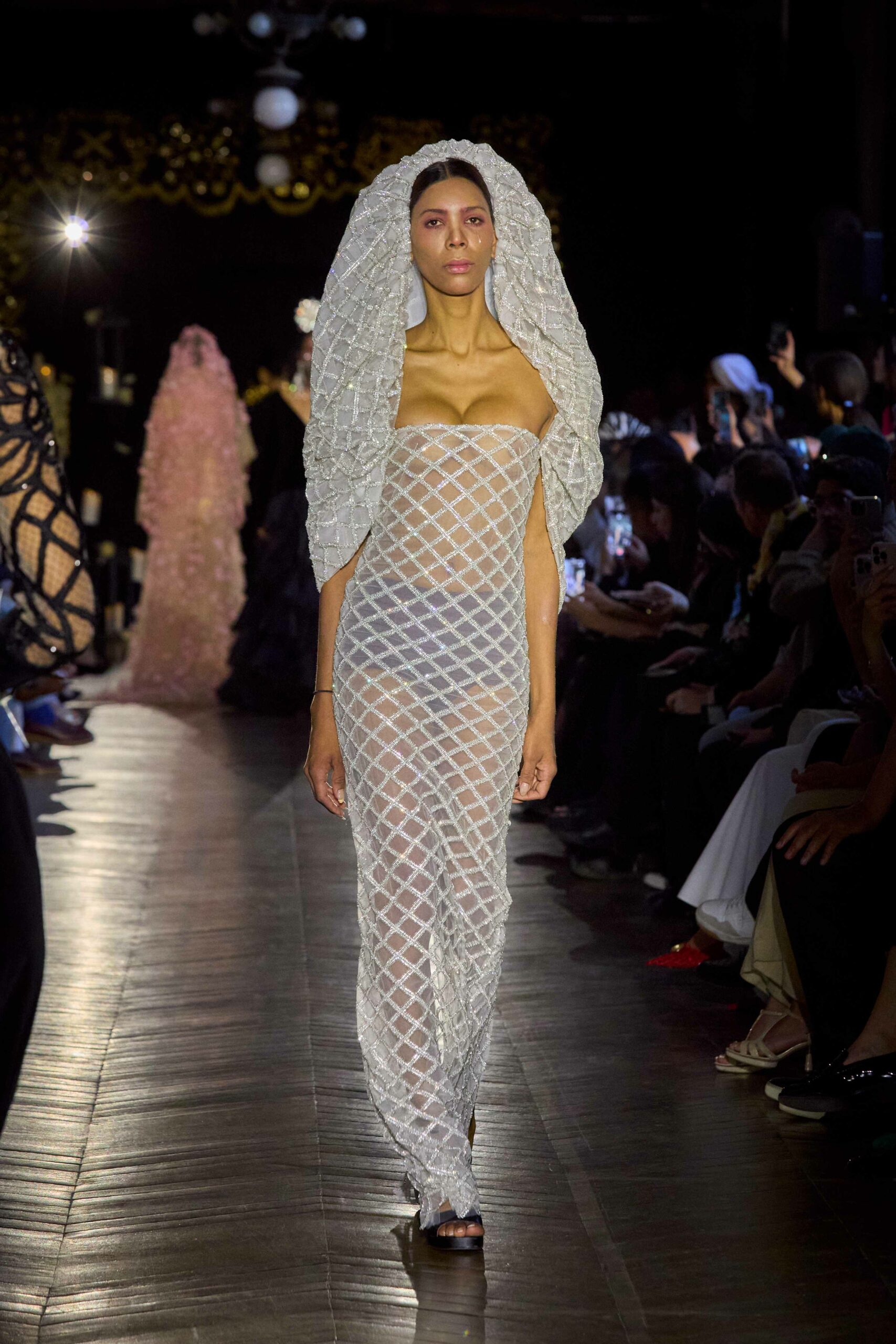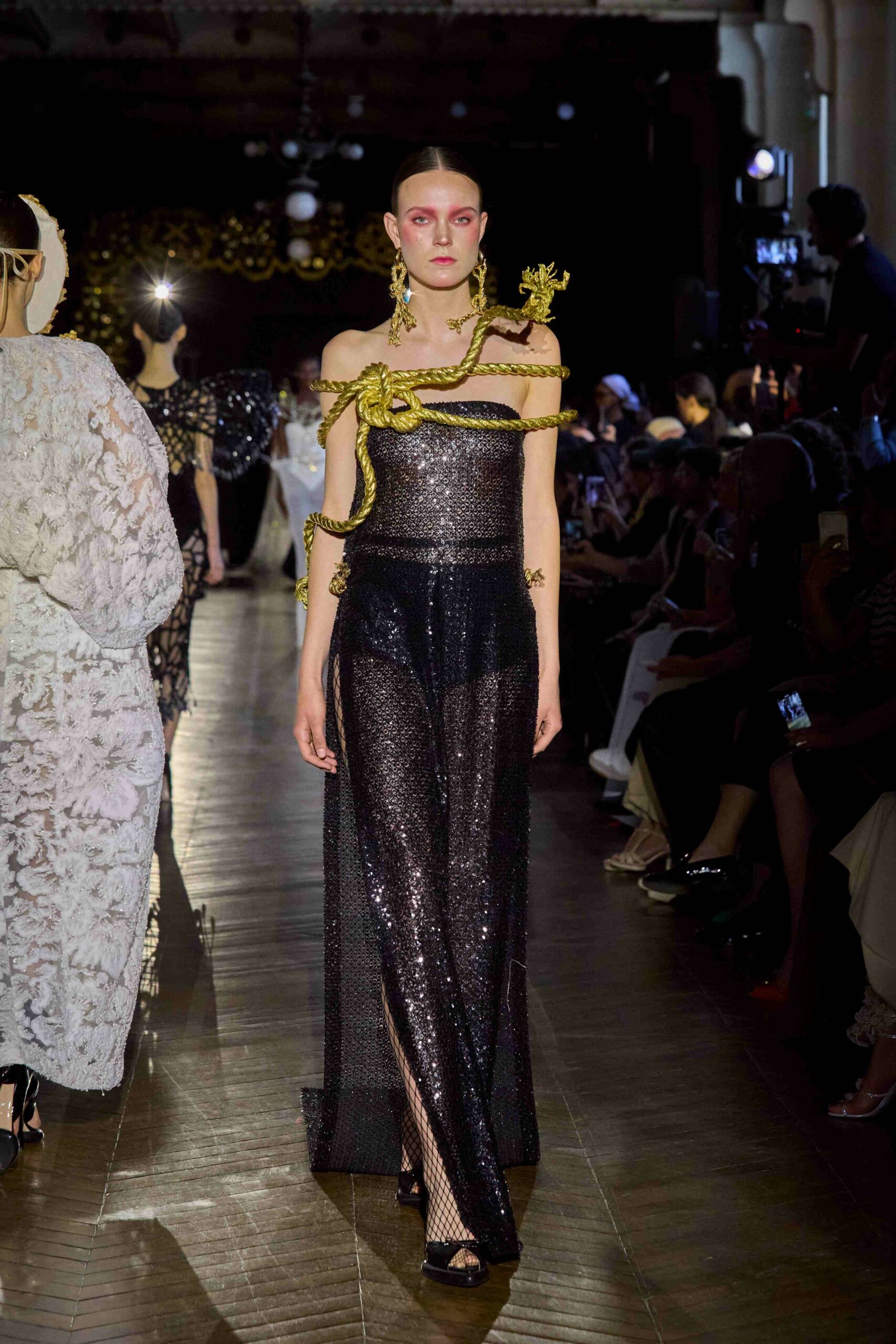 Dévotion et passion lors du défilé Couture, où les invités ont été transportés au cœur d’une procession solennelle de la Semaine Sainte. Une fois de plus, la créatrice réaffirme son engagement à faire rayonner sa culture, cette fois lors de la deuxième journée du Calendrier Officiel de la Haute Couture.