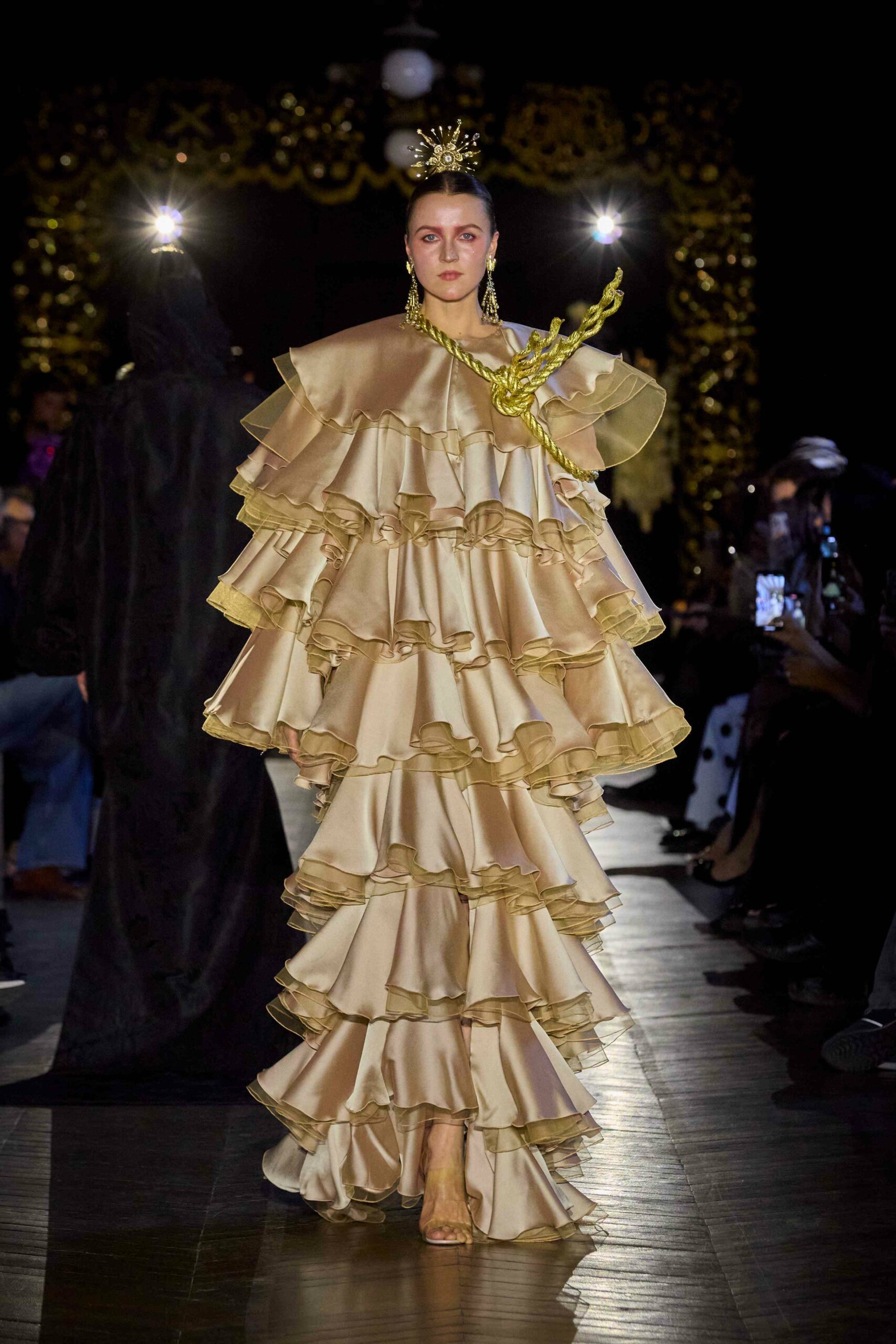 Juana Martín continue de s’imposer, une saison de plus, en mettant à l’honneur son héritage espagnol, et andalou. Il s’agit de la septième collection de Couture de la créatrice qui puise, cette fois, son inspiration dans l’une des traditions les plus ancrées d’Andalousie : le fervent sentiment religieux. Elle l’interprète comme une expression collective de foi, dotée d’une forte identité culturelle au sein de la société andalouse.