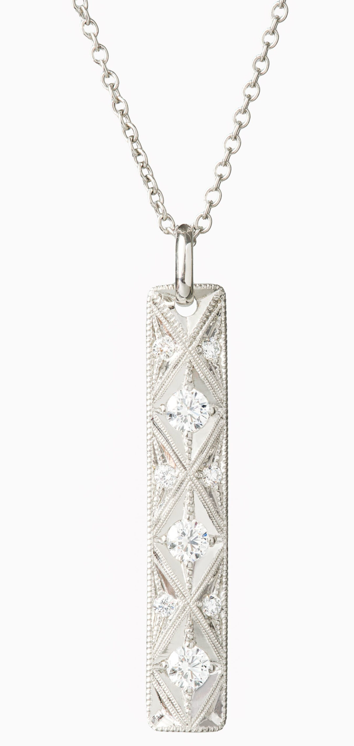 Pendentif barre : Diamants D-G VS de 40 carats – Chaîne en platine de 45 cm – Matériaux : platine – diamant