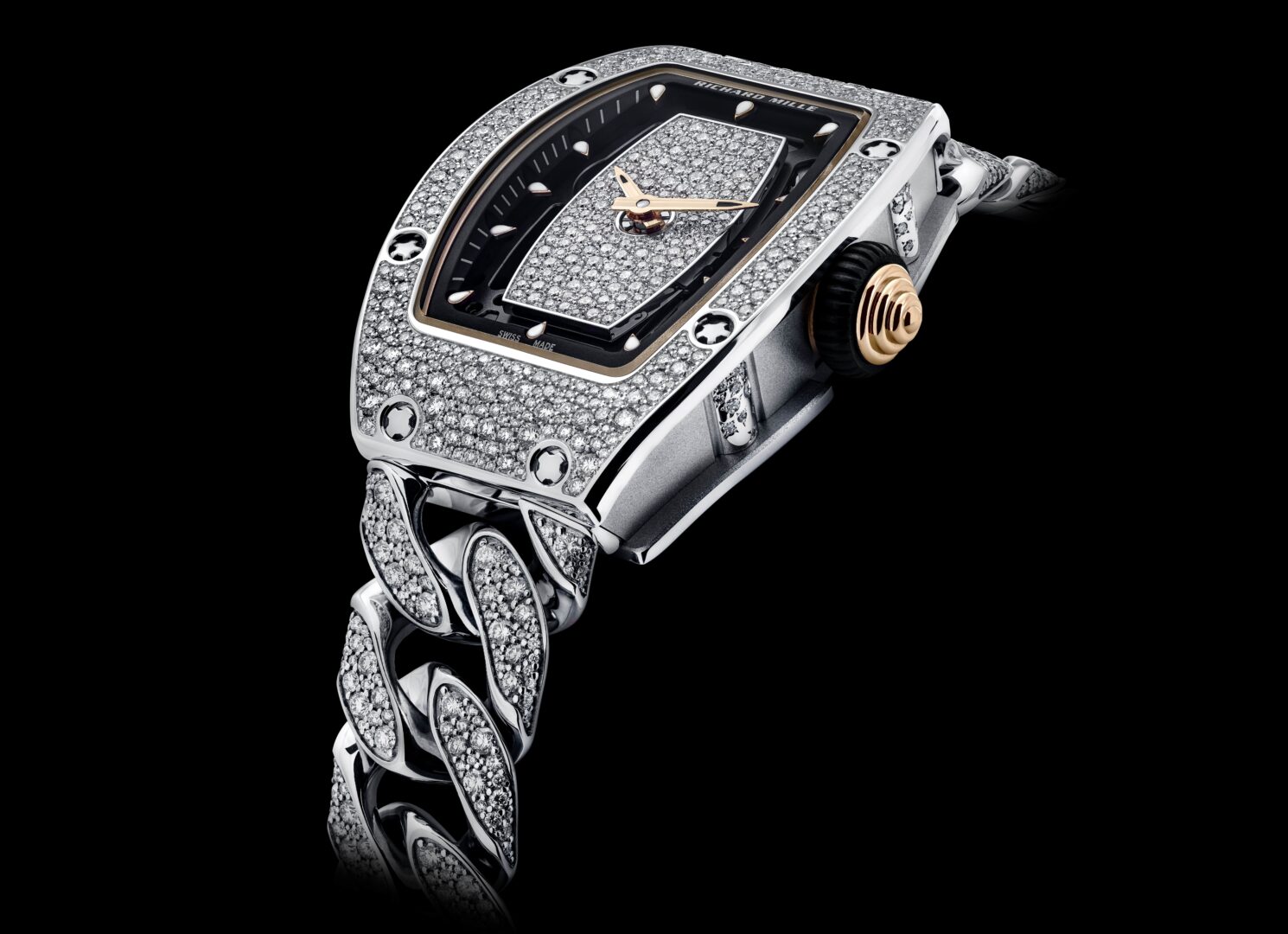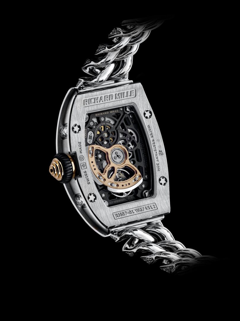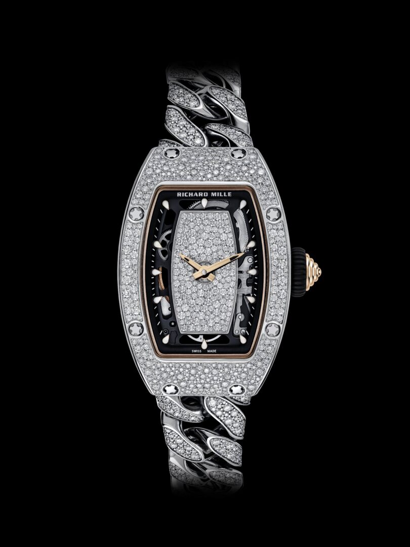 RM 07-01 en or gris sertie neige sur un bracelet gourmette serti de diamants