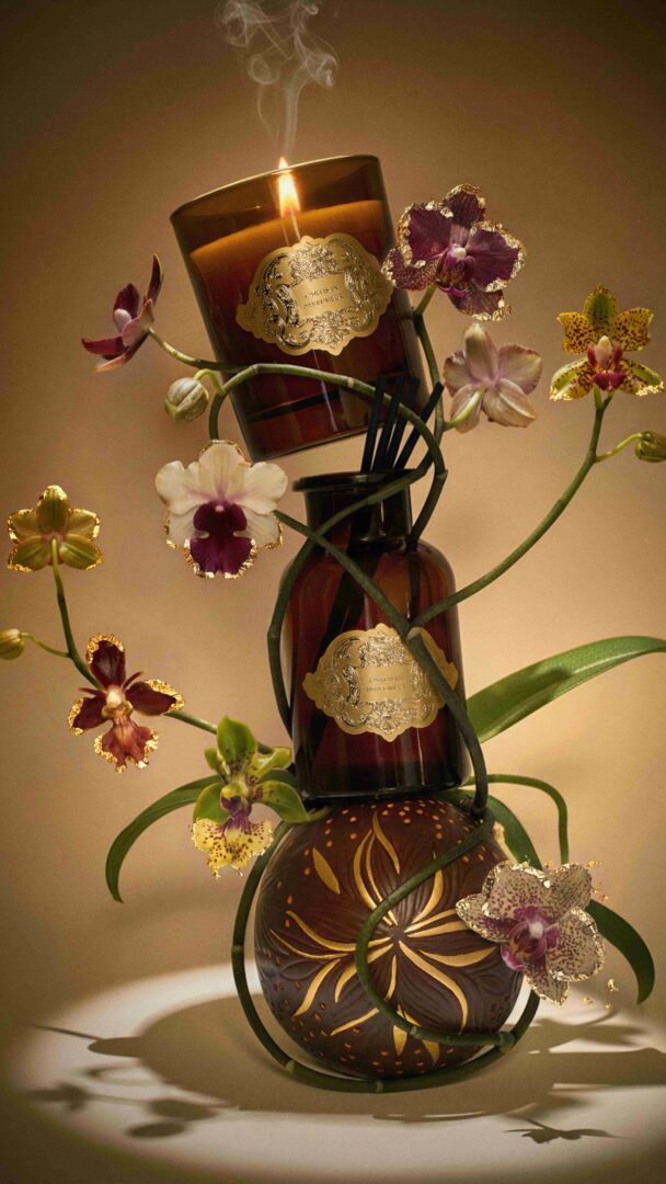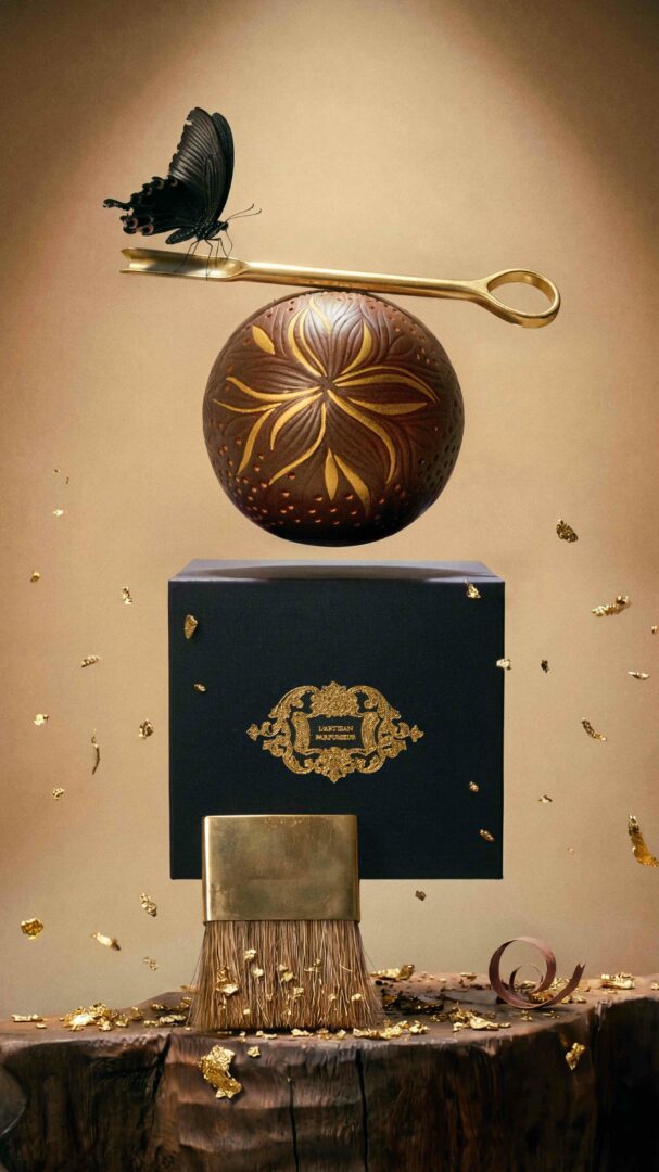 De la précision des céramistes aux finitions précieuses, tout est affaire de transmission. Les ateliers façonnent, vernissent, subliment. Le parfumeur insuffle l’âme en y déposant les cristaux d’ambre. Puis viennent les mains expertes qui illuminent la matière de feuilles d’or, avant que l’écrin ne soit à son tour façonné, comme une ultime promesse d’élégance.