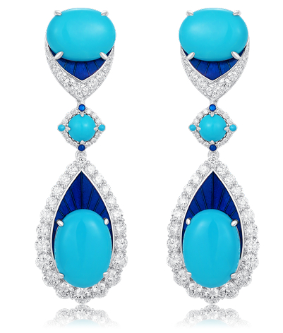 Pierres principales : 6 Turquoises, 35,74 carats – Pierres secondaires : 90 Diamants, 7,27 carats – Serti en or blanc 18 carats – Crédits photos ©Serendipity Paris