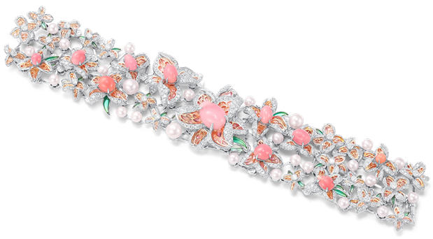 La collection de Haute Joaillerie « Jardin du Rêve » s’inspire des souvenirs de sa fondatrice : entre la sérénité feutrée du jardin chinois classique de ses grands-parents et les couleurs changeantes du jardin de Monet en Europe. Ces deux impressions fusionnent dans l’imagination, formant un jardin qui n’existe que dans les rêves, mais que la joaillerie rend palpable.