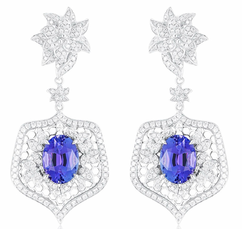 Pierres principales : Une Paire de Tanzanites taille ovale, 9,33 carats – Pierres secondaires : 328 Diamants, 2,08 carats – Serti en or blanc 18 carats – Crédits photos ©Serendipity Paris