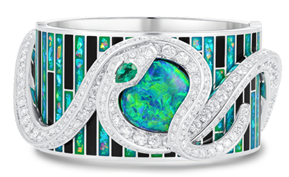 Bracelet Serpent en Opale Noire et Émail Gemmé