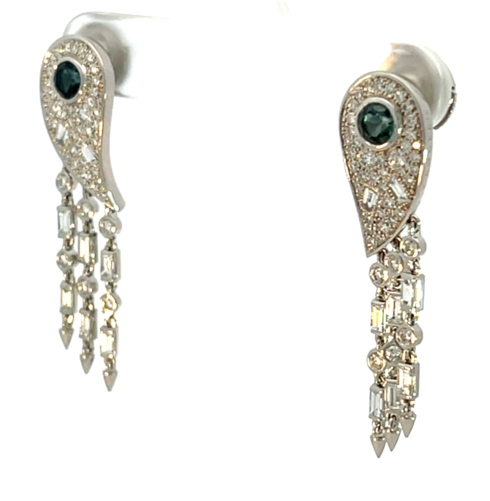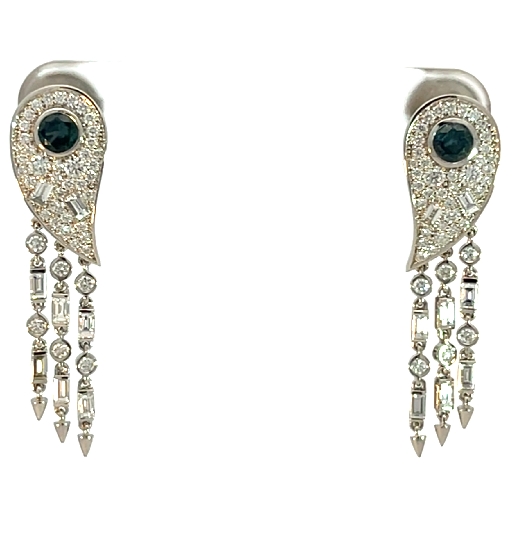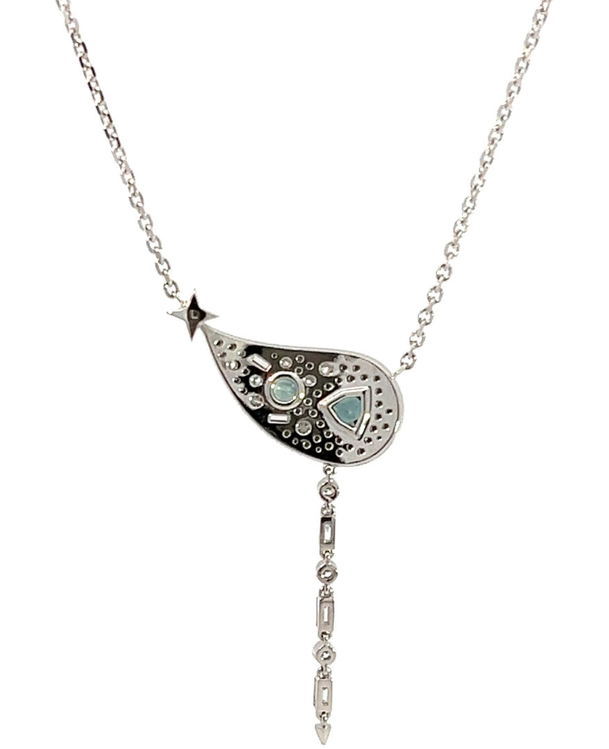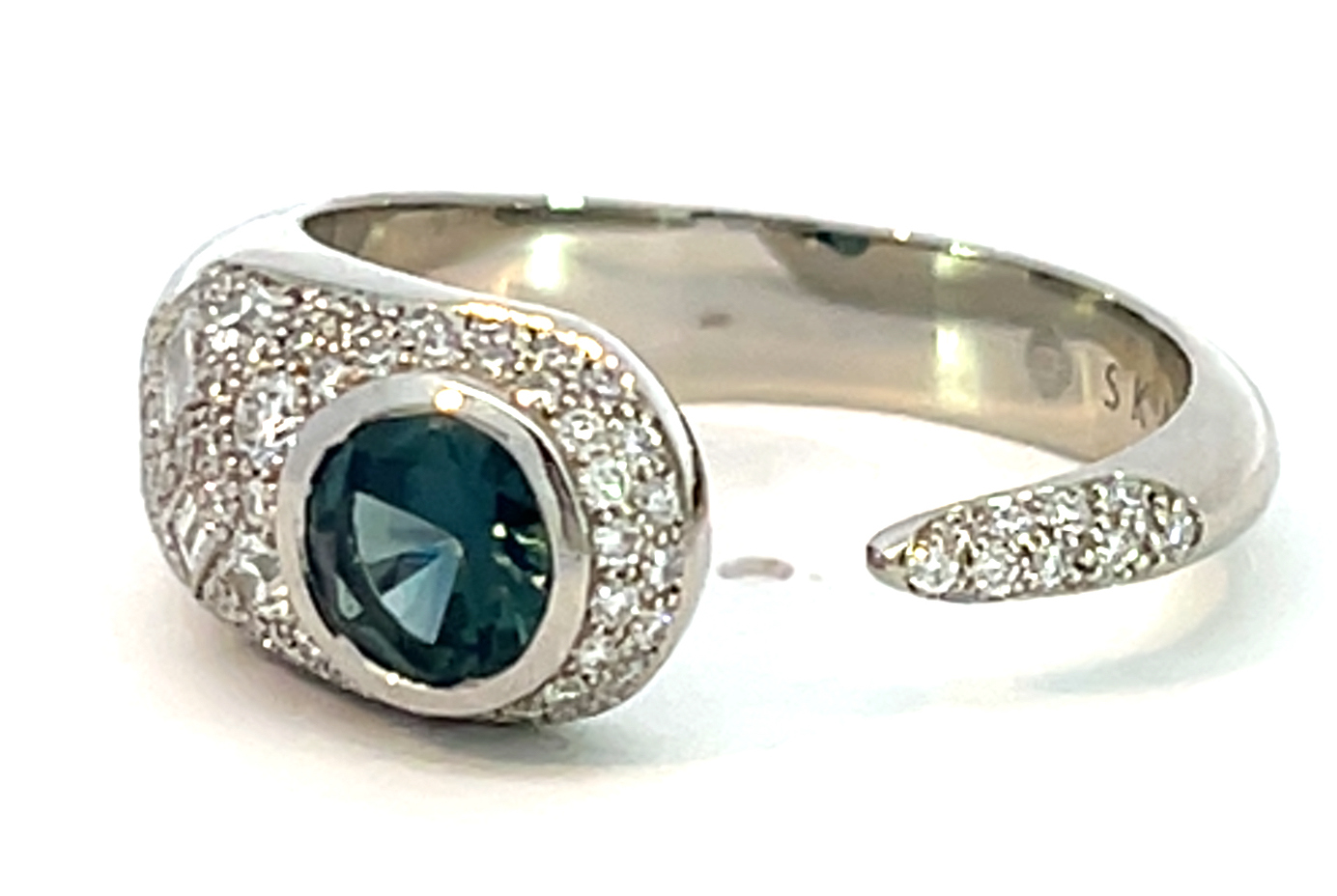 À ces saphirs s’ajoutent, selon les pièces, d’autres gemmes soigneusement choisies – grenats spessartites aux reflets mandarine, tsavorites d’un vert intense, tourmalines délicatement colorées ou encore amétrines aux tonalités subtiles. Autant de variations qui confèrent à chaque création une identité propre, sans jamais rompre l’harmonie d’ensemble.