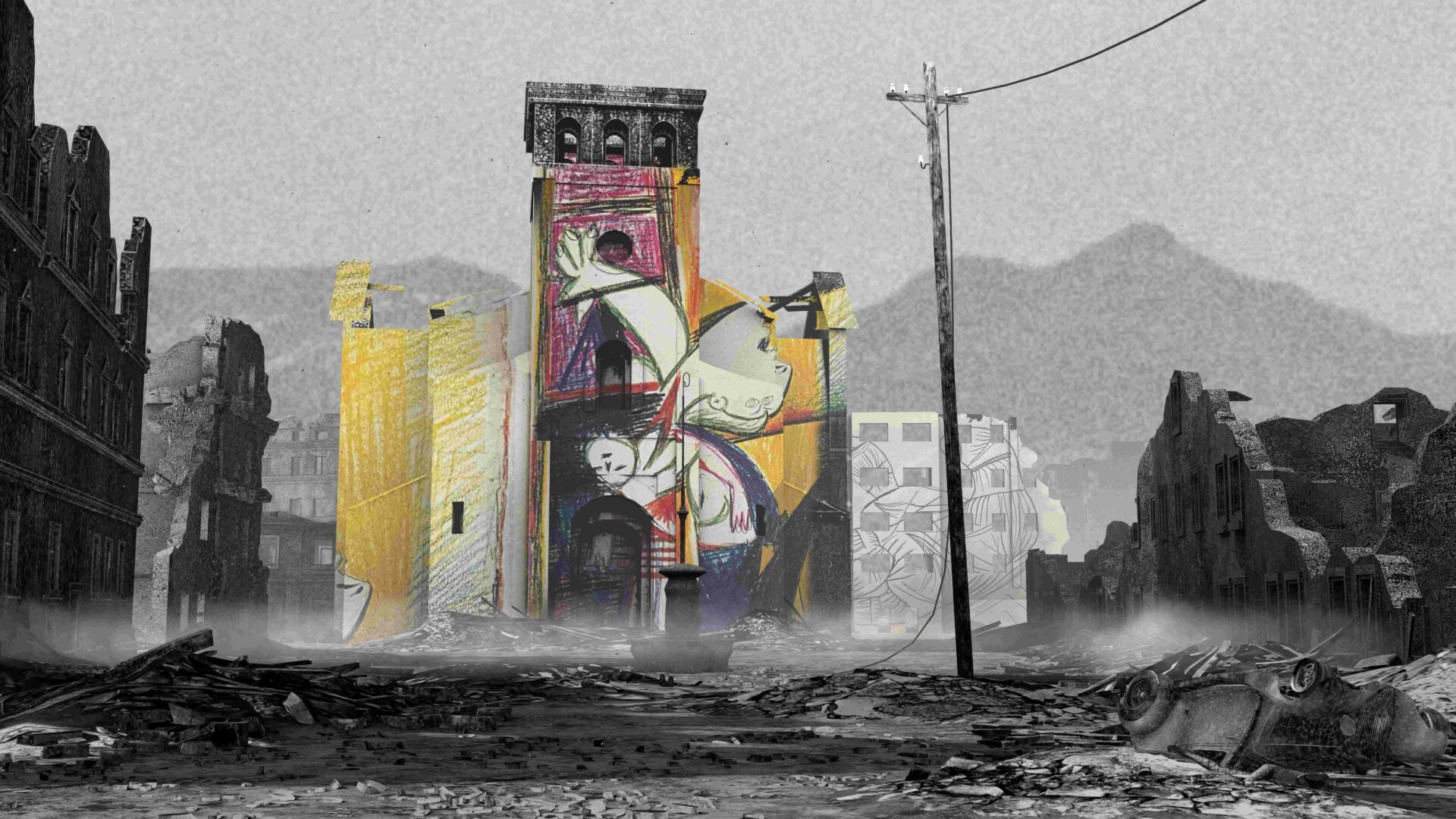 Ruines de la ville basque de Gernika après le bombardement – Crédits photos ©Lucid Realities – Musée Picasso National Paris – VIVE Arts