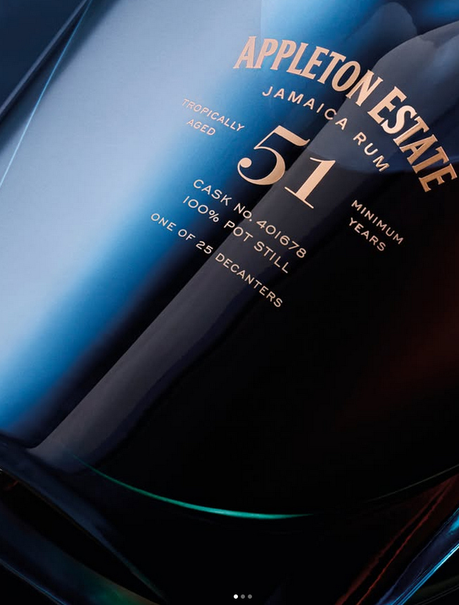 Chacune des carafes produites rend hommage à l’héritage séculaire du domaine Appleton Estate et à la tradition jamaïcaine de l’élaboration du rhum. Conçues en forme de cœur, les carafes -soufflées à la main, façonnées par les artisans verriers- révèlent la teinte acajou du précieux liquide, qui se prolonge vers une base cristalline aux reflets aigue-marine, en écho à la pureté de l’eau issue de la source calcaire. Chaque pièce est surmontée d’un bouchon en cuivre fabriqué à la main représentant le colibri, emblème de la Jamaïque, et repose sur un fond bleu marine.