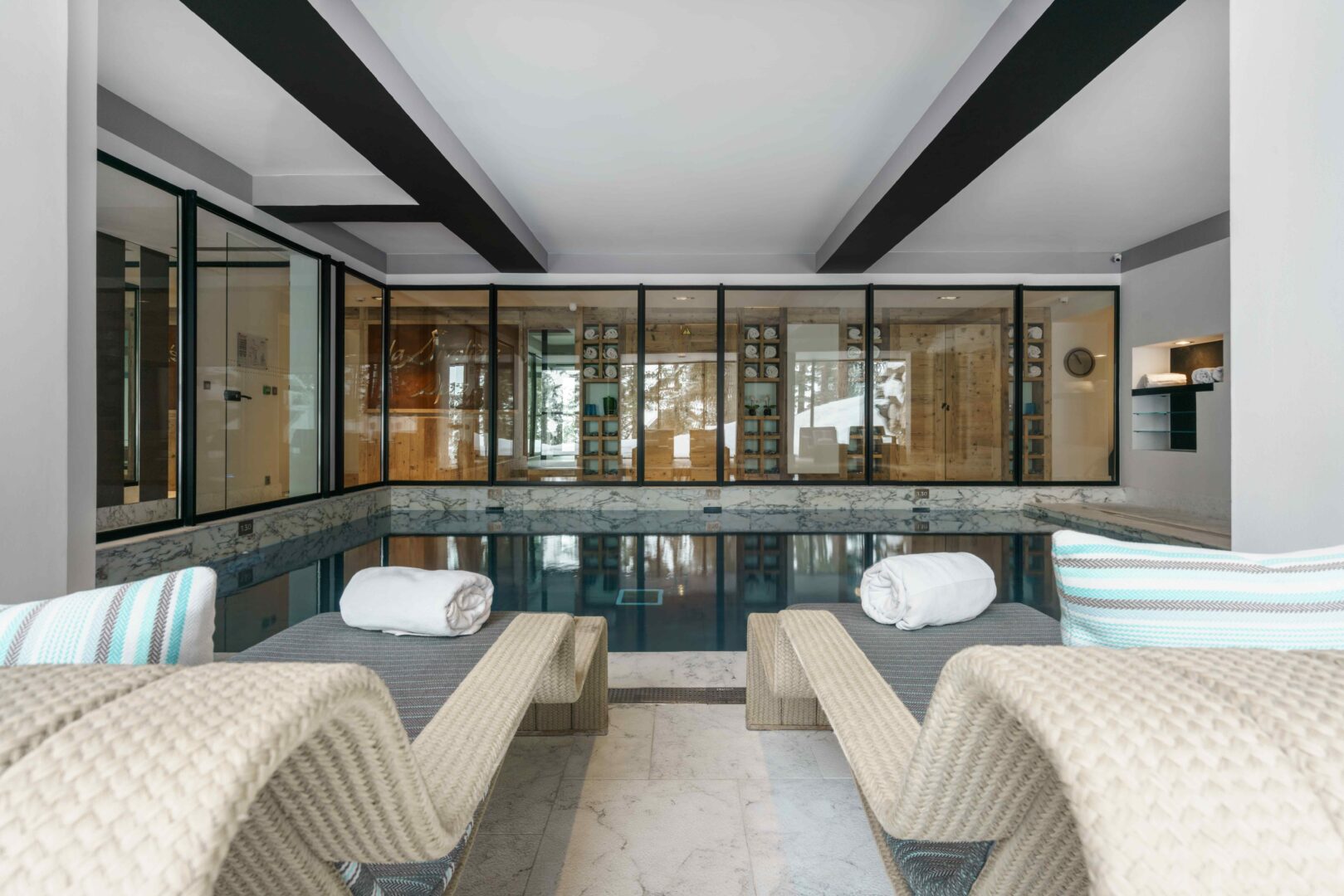35 chambres, suites familiales et appartements ont été totalement rénovés dans un style mêlant le confort british et son côté floral avec le bois et la pierre. Les salles de bains ont également été revisitées. Les deux appartements privés duplex de 145m² ont, eux, été aménagés comme de vrais chalets privés. Avec un vaste salon pour profiter d’une ambiance feutrée au coin du feu, une vraie salle à manger pour dîner en famille ou entre amis, en toute intimité.