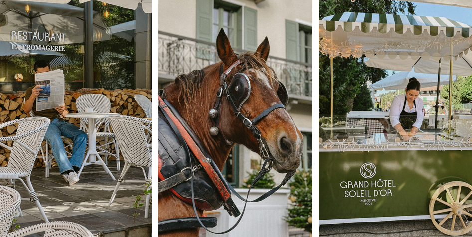 Dès les beaux jours, le marché s’installe avec ses étals colorés, ses produits du terroir et ses senteurs florales. Visiteurs, habitants et curieux se croisent, créant une atmosphère de village, chaleureuse et animée. Dans cet esprit d’ouverture et de convivialité, le Grand Hôtel Soleil d’Or installe régulièrement son chariot à douceurs : crêpes préparées sous vos yeux, glaces artisanales et chocolat chaud maison enchantent les passants comme les clients de l’hôtel.