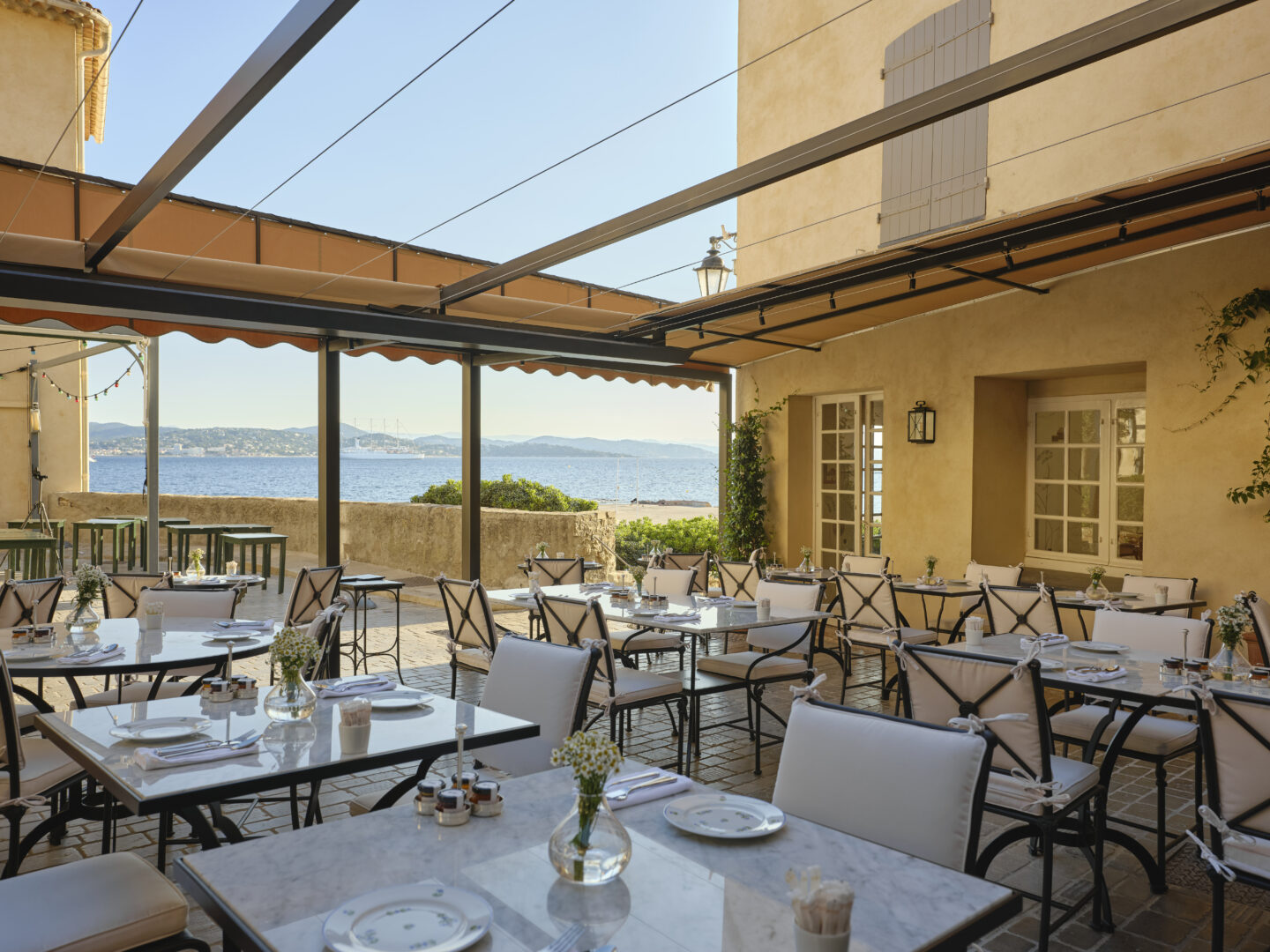 La terrasse légendaire a été végétalisée. Dès le petit-déjeuner, elle entretient le mythe mais aussi une restauration allègre jusque tard le soir. Au déjeuner, elle s’ouvre pour un déjeuner face à la mer avec une carte fraîche et légère, alors que le soir, les tables sont nappées et la carte signée par le Chef.