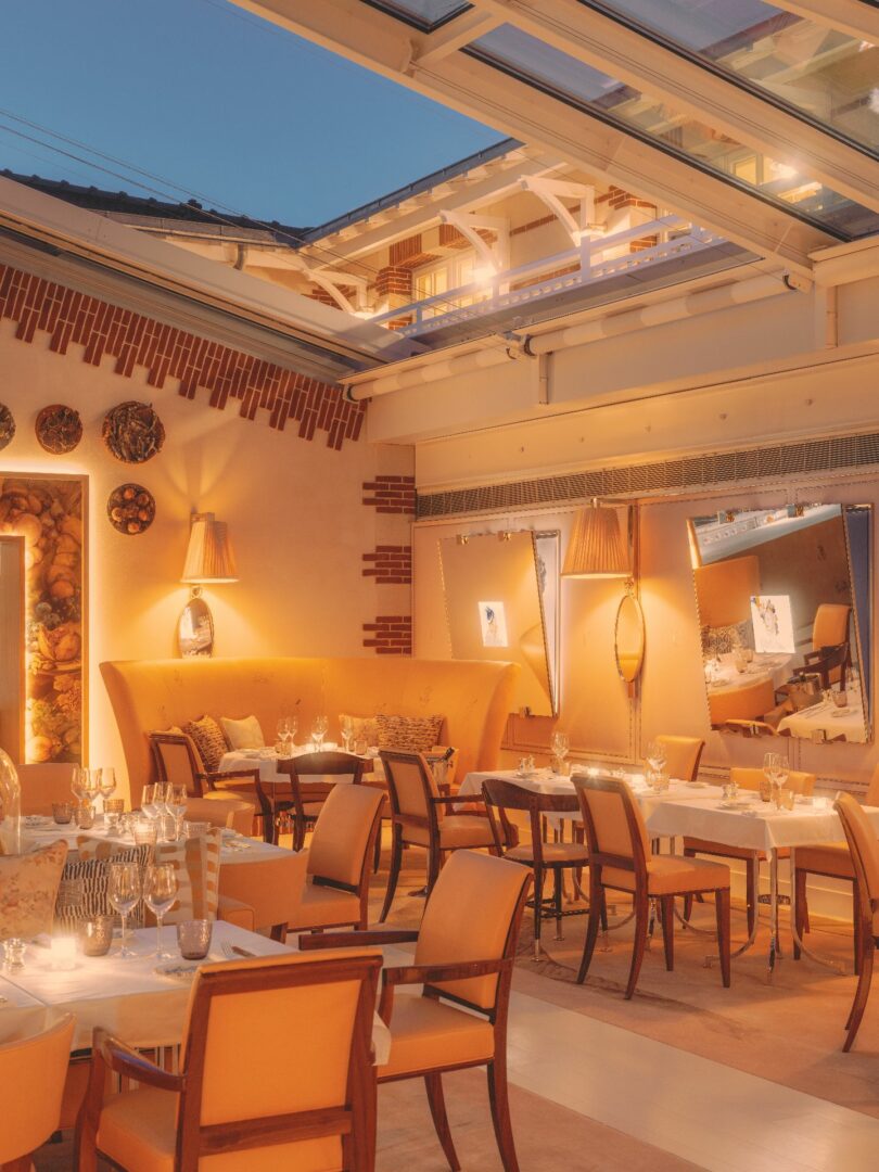 La pêche locale du jour dialogue avec des influences venues d’ailleurs, dans des assiettes ciselées, toujours équilibrées. L’expérience dépasse le goût : elle se vit dans un décor théâtral, entre miroirs, reflets et éclats d’argenterie. Sous la verrière baignée de lumière ou à la nuit tombée, chaque service devient une mise en scène.