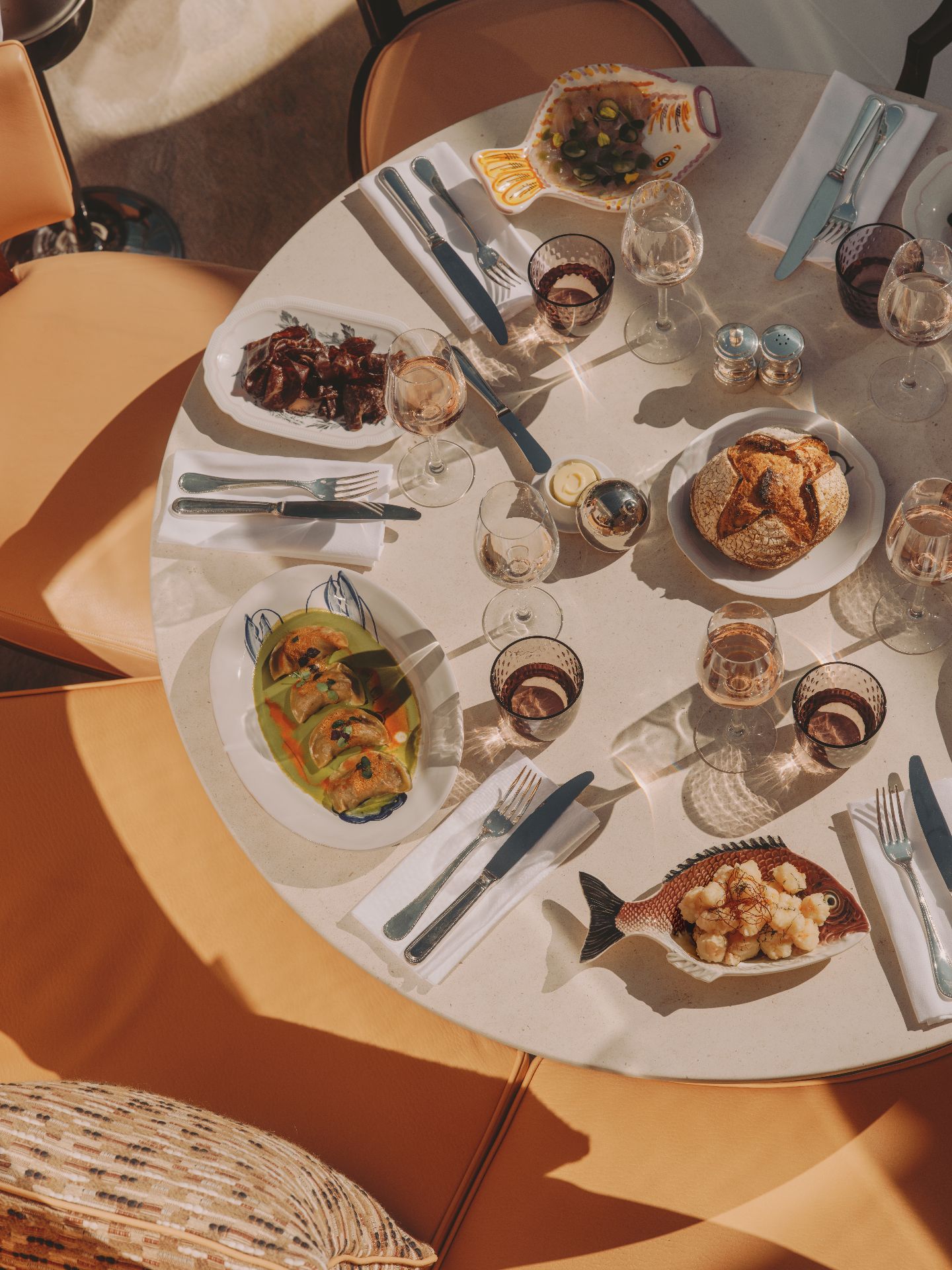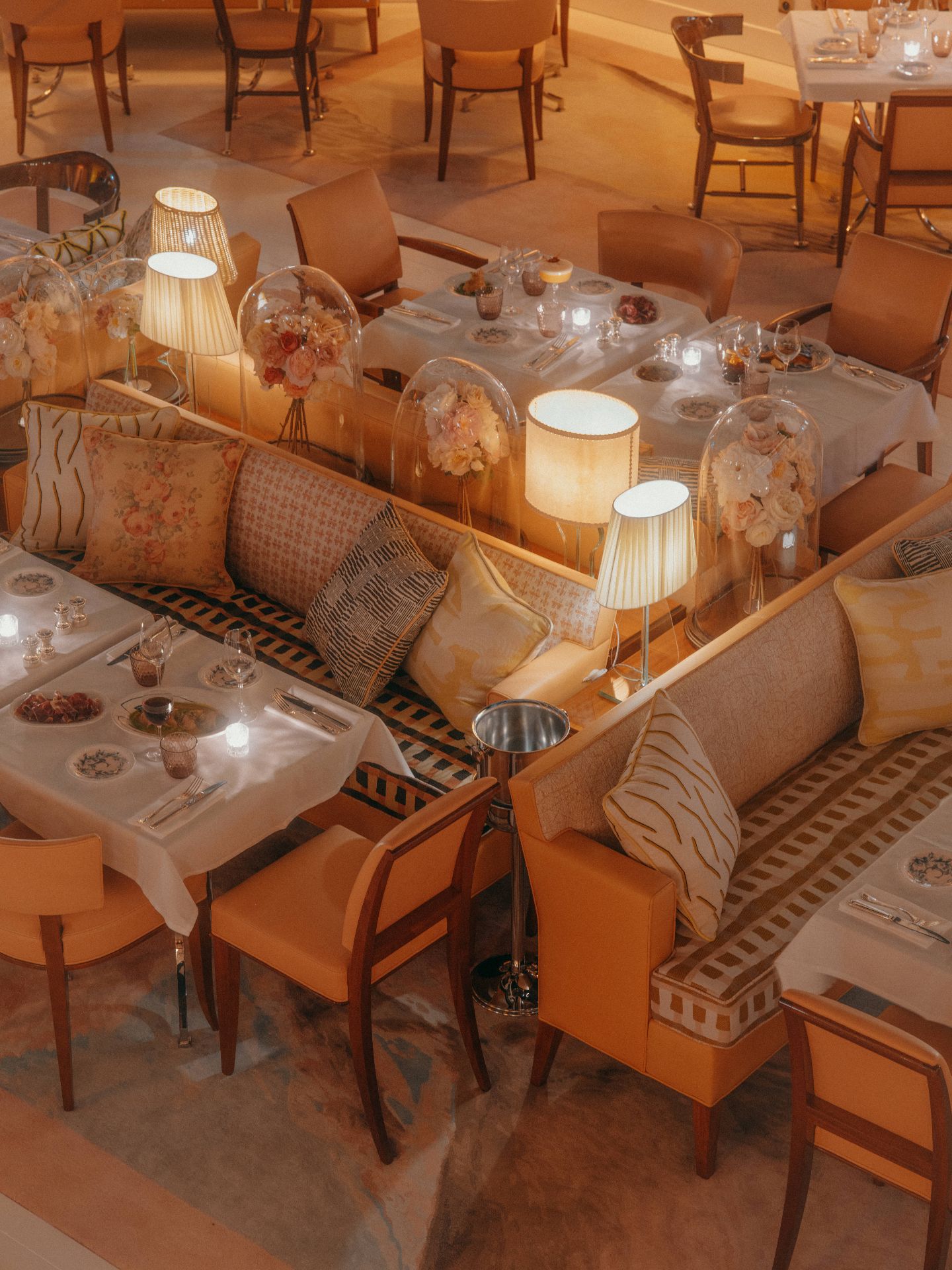 La pêche locale du jour dialogue avec des influences venues d’ailleurs, dans des assiettes ciselées, toujours équilibrées. L’expérience dépasse le goût : elle se vit dans un décor théâtral, entre miroirs, reflets et éclats d’argenterie. Sous la verrière baignée de lumière ou à la nuit tombée, chaque service devient une mise en scène.