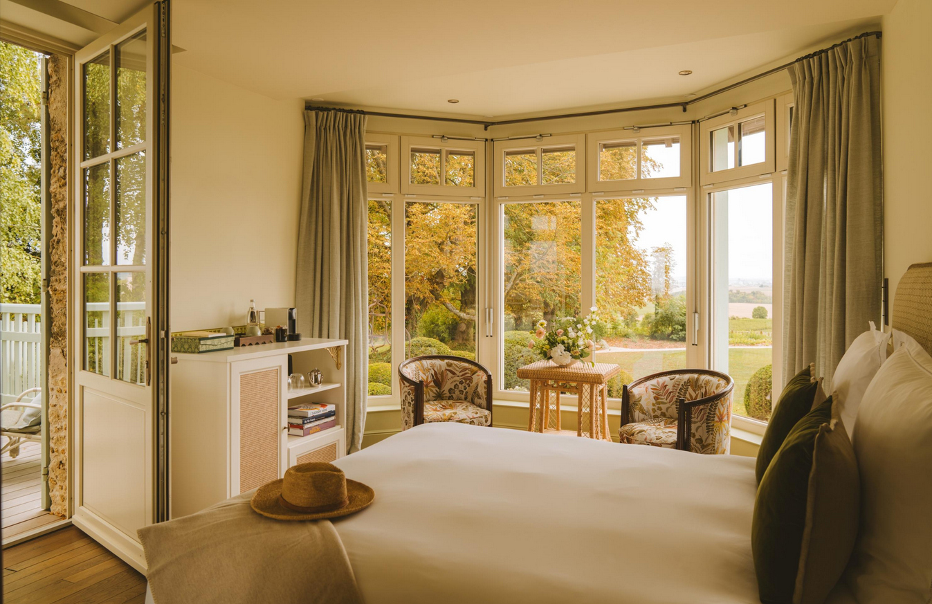 Voulue comme une résidence privée, la Villa des Trois Clochers accueille jusqu’à dix hôtes -qui ont un accès privilégié aux installations du Royal Champagne Hotel & Spa- dans le confort absolu de ses cinq suites aux proportions généreuses réparties entre vingt et quarante-trois mètres carrés. Toutes ont été pensées comme des espaces de repos et d’intimité, avec chacune une atmosphère propre, façonnée par l’orientation, la lumière naturelle, les vues sur les vignes ou le jardin. Boiseries, tissus naturels, éclats de laiton et fragrances Diptyque Paris créent un univers intime, à la fois raffiné et accueillant.